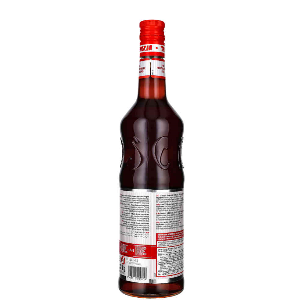 TOSCHI SYROP TOBACCO to unikalny syrop o wyrafinowanym, dymnym smaku tytoniu, stworzony przez włoską firmę Toschi, która jest znana z produkcji luksusowych syropów i likierów. Ten nietypowy syrop dodaje głębi i złożoności różnym napojom i deserom, oferując nietuzinkowe doznania smakowe. Ma gęstą, jedwabistą konsystencję, która dobrze miesza się z różnymi składnikami.