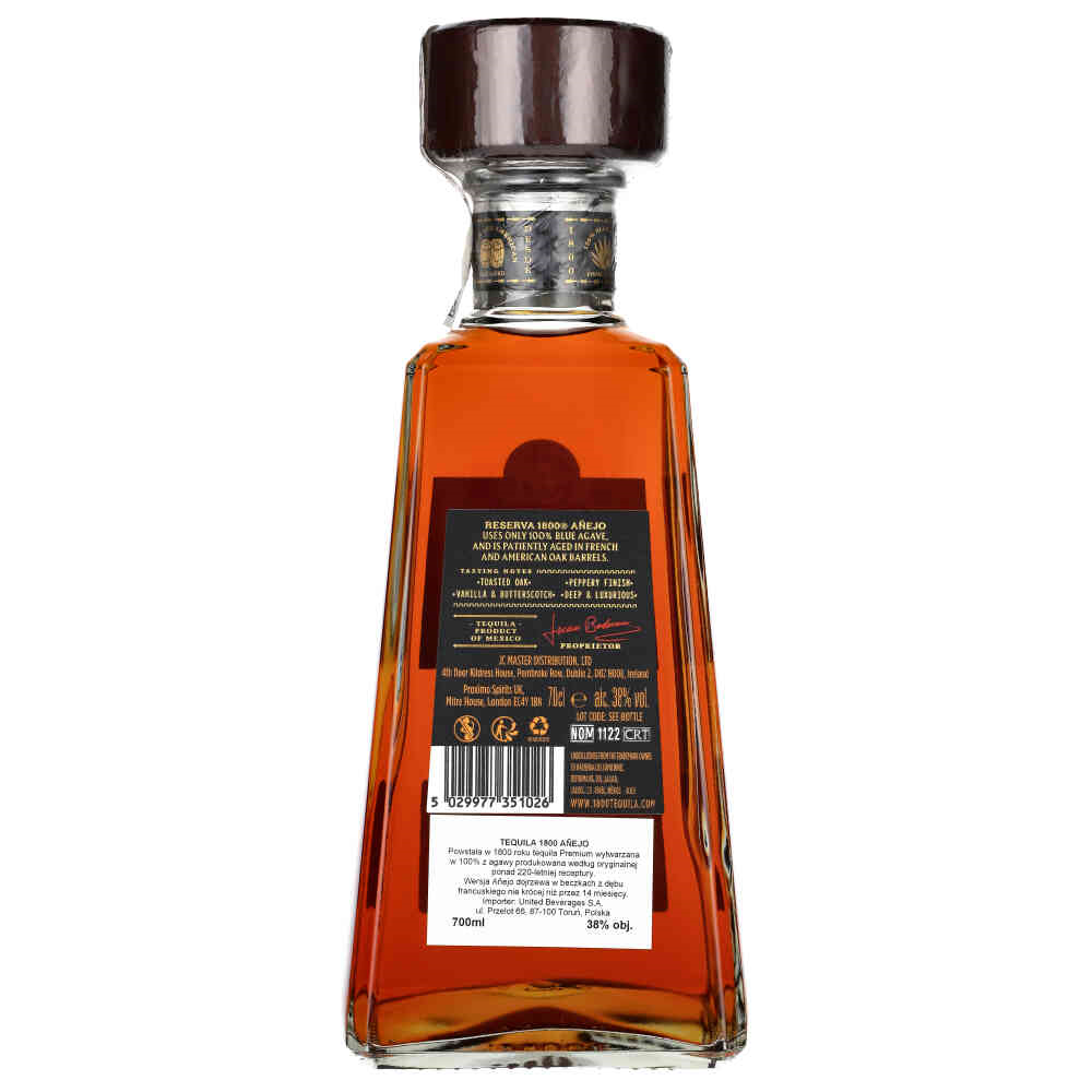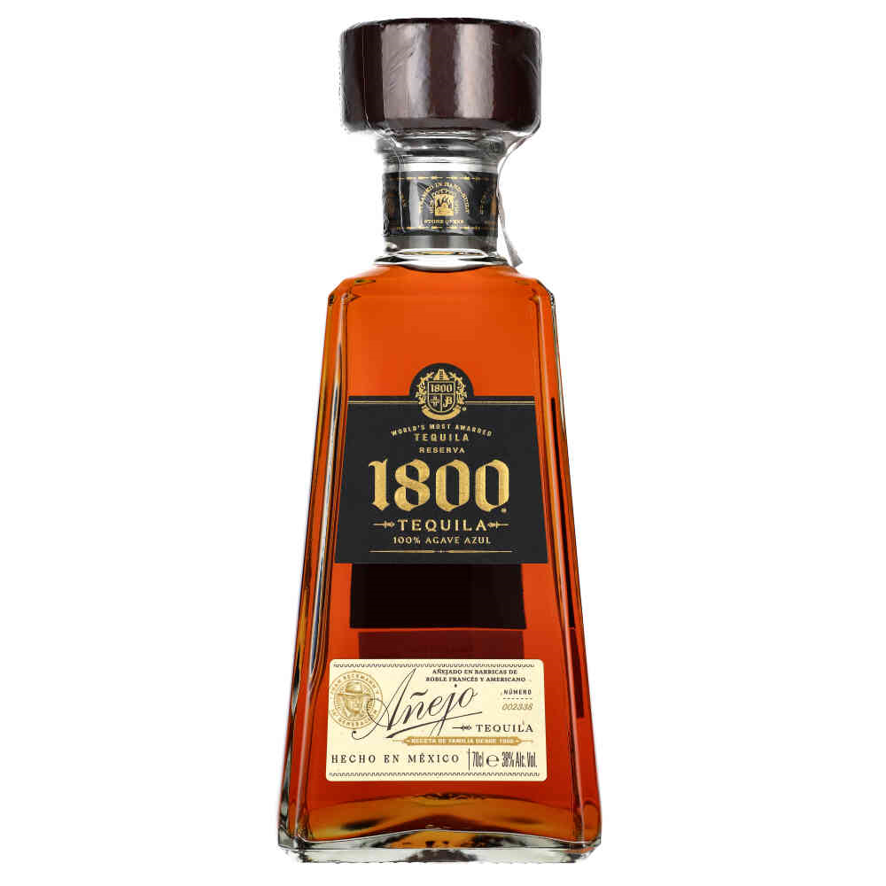 Liczba 1800 symbolizująca markę tej tequili jest jednocześnie datą z którą tequila po raz pierwszy trafiła do dębowych beczek. Tequila ta jest również pierwszą jakościową tequilą która trafiła na rynek Amerykański. Dla podkreślenia autentyczności na każdej butelce widnieje podpis założyciela Juan Domingo Beckmann oraz Master Distillera Luis Yerenas. 1800 anejo spędza w beczkach z francuskiego dębu minimum 14 miesięcy.