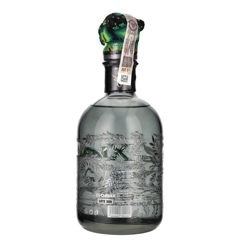 Elegancka, ręcznie zdobiona butelka z naturalnymi motywami oddaje hołd meksykańskiej sztuce, czyniąc go nie tylko wyjątkowym trunkiem, ale i dziełem sztuki.
