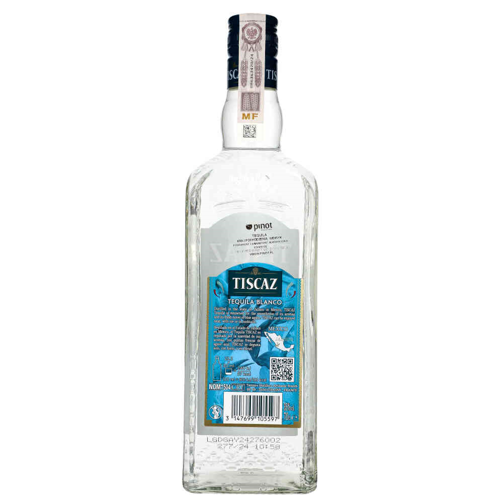TISCAZ BLANCO Tequila, w której dominują delikatne aromaty i świeże nuty. Destylowana w meksykańskim stanie Jalisco. Produkuje się ją z czystego serca agawy zwanego piña. Nie starzona w beczce. Tiscaz Blanco ma delikatny, charakterystyczny bukiet z subtelnymi aromatami agawy, białego pieprzu i cytrusów z nutami drzewnymi.