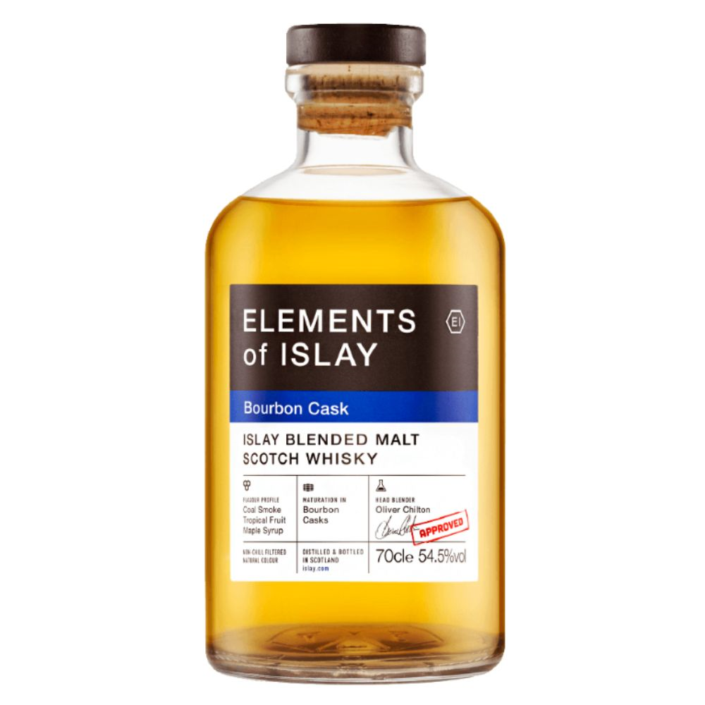 ELEMENTS OF ISLAY BOURBON CASK Ten blend dojrzewa w beczkach z pierwszego i ponownego napełnienia po bourbonie. Subtelnie cierpki posmak północnego wybrzeża zestawiony z klasycznym bogatym grillowo-dymnym smakiem z destylarnii Islay. Na podniebieniu mocno waniliowy z dodatkiem cytrusów z czasem przechodzi w smak palonych ziaren kawy, połącznych z goryczką skórki z grejpfruta, soli morskiej i dymu.