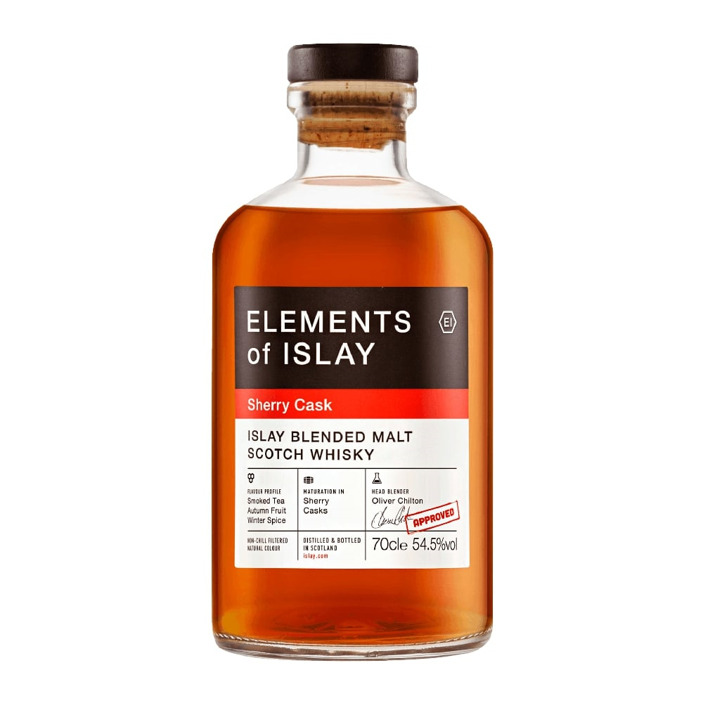 ELEMENTS OF ISLAY SHERRY CASK Ta whisky dojrzewa w beczkach po sherry z pierwszego i ponownego napełnienia oraz w beczkach typu hogshead. Islay single malt z destylarni na południowym wybrzeżu przynosi aromaty suszonych owoców i ciemnej czekolady, podczas gdy destylarnia na północnym wybrzeżu wnosi nuty olejku cytrynowego i dymu. W smaku wyczuwalne suszone skórki pomarańczy i cytryn połączone z likierem, czekoladą i prażonym dębem. Długi finisz z suchym dymem, tytoniem i odrobiną słodyczy.