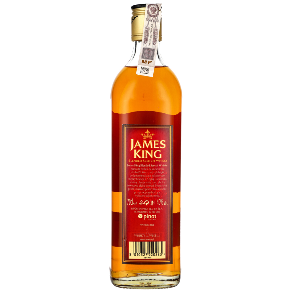 Ta whisky wyróżnia się dobrze zbalansowanym profilem smakowym, łącząc klasyczne nuty szkockie z subtelnymi akcentami owocowymi. Dzięki starannemu procesowi mieszania, James King oferuje gładką teksturę oraz przyjemny, długi finisz, co czyni ją idealną do degustacji samodzielnie lub jako składnik koktajli.