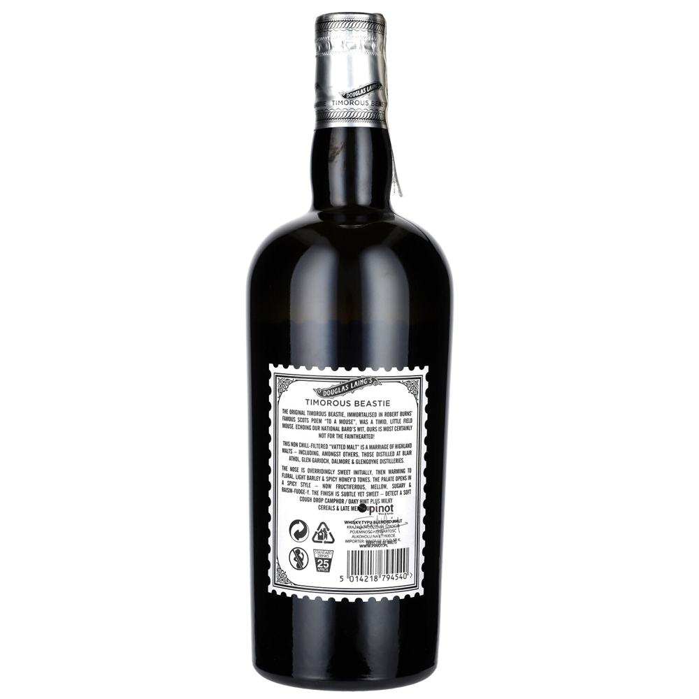 Timorous Beastie to wyjątkowa whisky typu blended malt od szkockiej marki Douglas Laing, która zadebiutowała w 2014 roku. Nazwa whisky nawiązuje do słynnego poematu Roberta Burnsa „To a Mouse”, a urocza mysz na etykiecie symbolizuje jej subtelność i finezję.