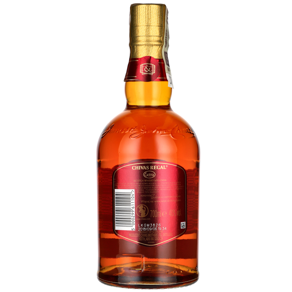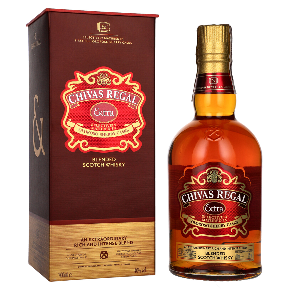 WHISKY CHIVAS REGAL EXTRA SHERRY to wyjątkowy blend whisky stworzony przez Colina Scotta, mieszanka słodowych i zbożowych whisky starzonych w beczkach po bourbonie i sherry Oloroso. Butelkowana bez filtracji na zimno, może mieć co najmniej 10 lat.
