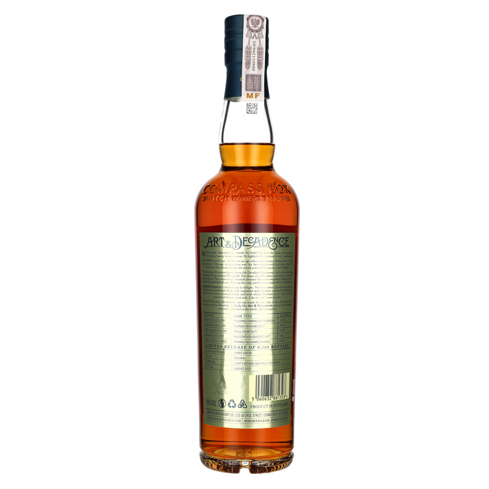 Limitowana edycja wyjątkowego blended Scotch whisky, będąca hołdem dla przepychu i zmysłowości. Butelkowana z mocą 49%, bez filtracji na zimno i bez dodatku barwników.