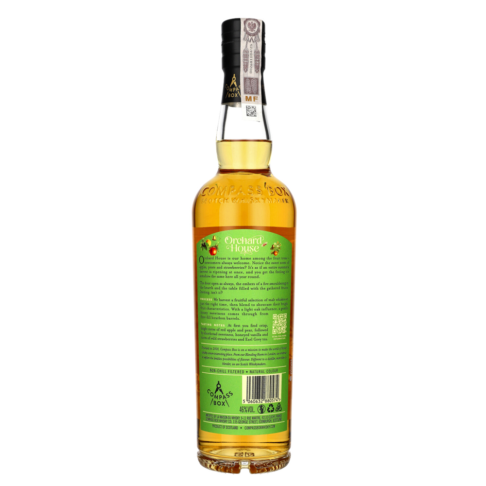 Compass Box Orchard House to wyrazista whisky typu blended malt, która łączy soczystość dojrzałych owoców z subtelnymi nutami dębu i słodyczy. Jest to produkt od renomowanej, niezależnej destylarni Compass Box, znanej z innowacyjnego podejścia do tworzenia whisky.