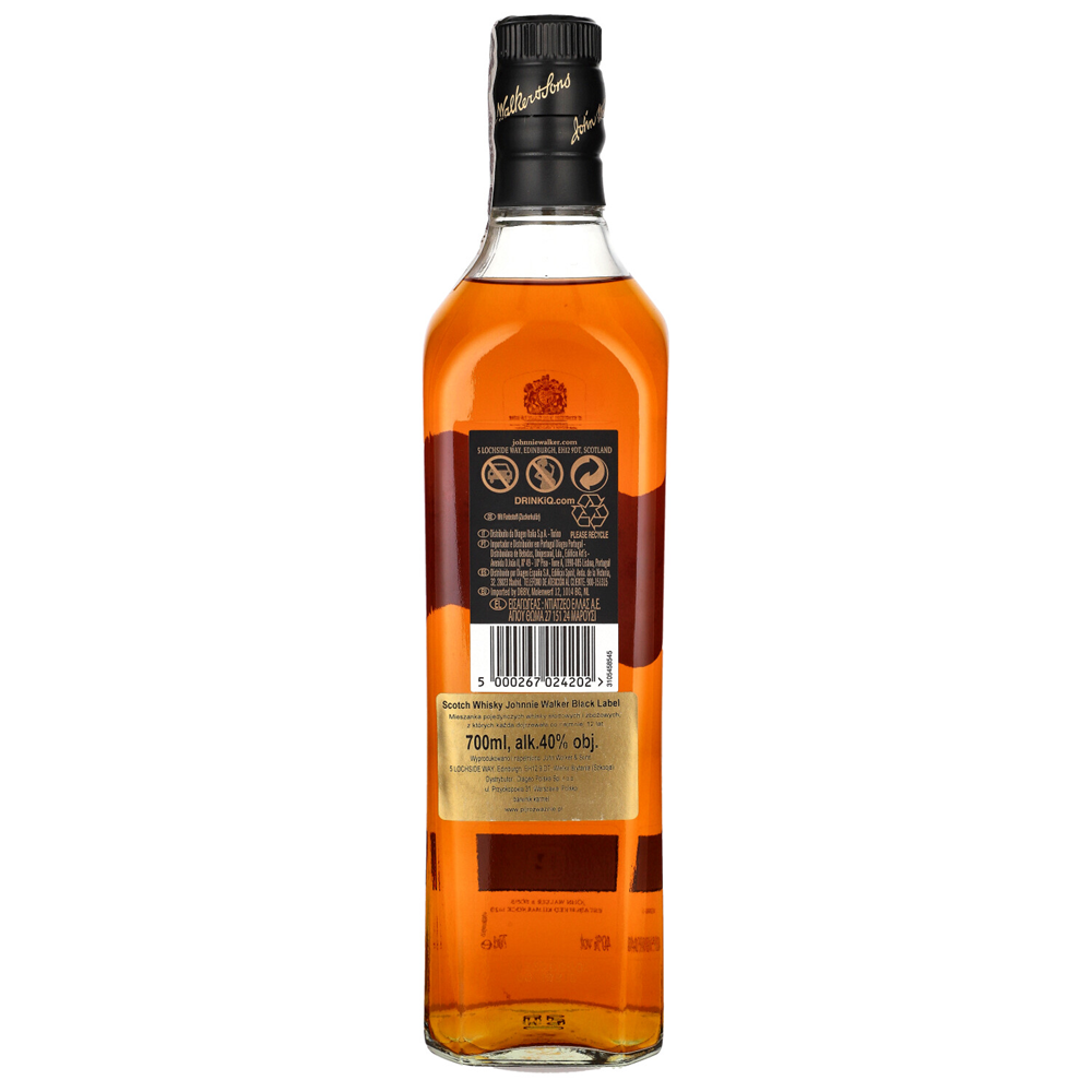Johnnie Walker Black Label 12Y to ikona szkockiej whisky, która zyskała uznanie na całym świecie dzięki swojemu wyjątkowemu charakterowi i złożoności smaków. Spędzając 12 lat w dębowych beczkach, ta whisky zyskuje głęboki bursztynowy kolor oraz niepowtarzalny aromat.