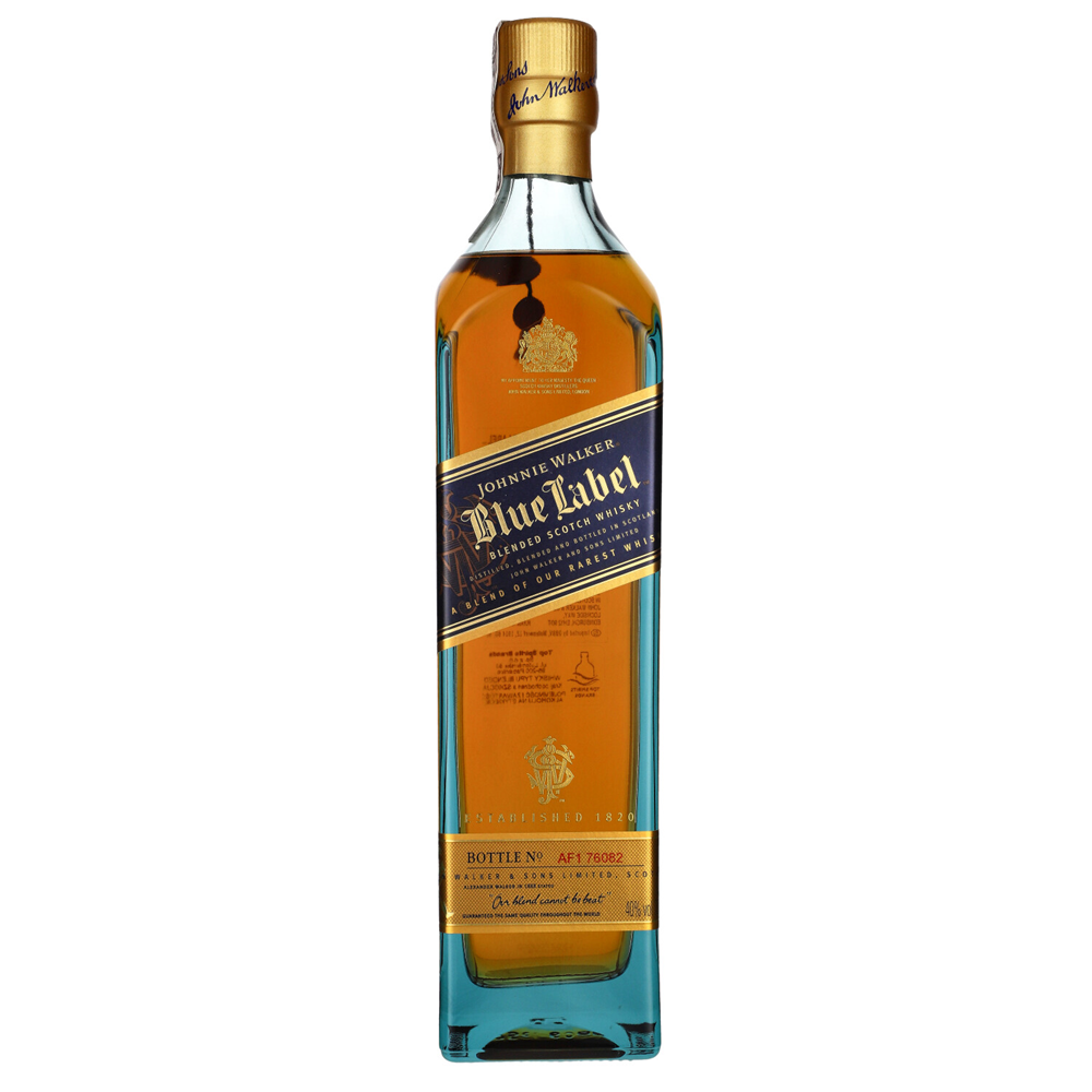 Johnnie Walker Blue Label 40% to luksusowa szkocka whisky typu blended, tworzona z rzadkich, długo leżakowanych destylatów z różnych regionów Szkocji. Mniej niż 1 na 10 000 beczek spełnia rygorystyczne kryteria jakości, by trafić do tego blendu, co czyni go wyjątkowym w skali globalnej.