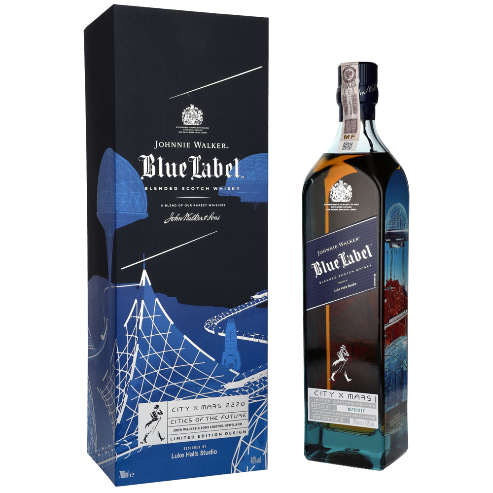 Johnnie Walker Blue Label NC Mars to część limitowanej serii "Cities of the Future", powstałej we współpracy z cyfrowym artystą Lukiem Hallsem. Ta edycja przedstawia futurystyczną wizję życia na Marsie w roku 2220, gdzie zaawansowane technologie geoinżynieryjne przekształciły Czerwoną Planetę w tętniące życiem kolonie. Projekt butelki odzwierciedla tę wizję Marsa jako rozwiniętego, futurystycznego świata.