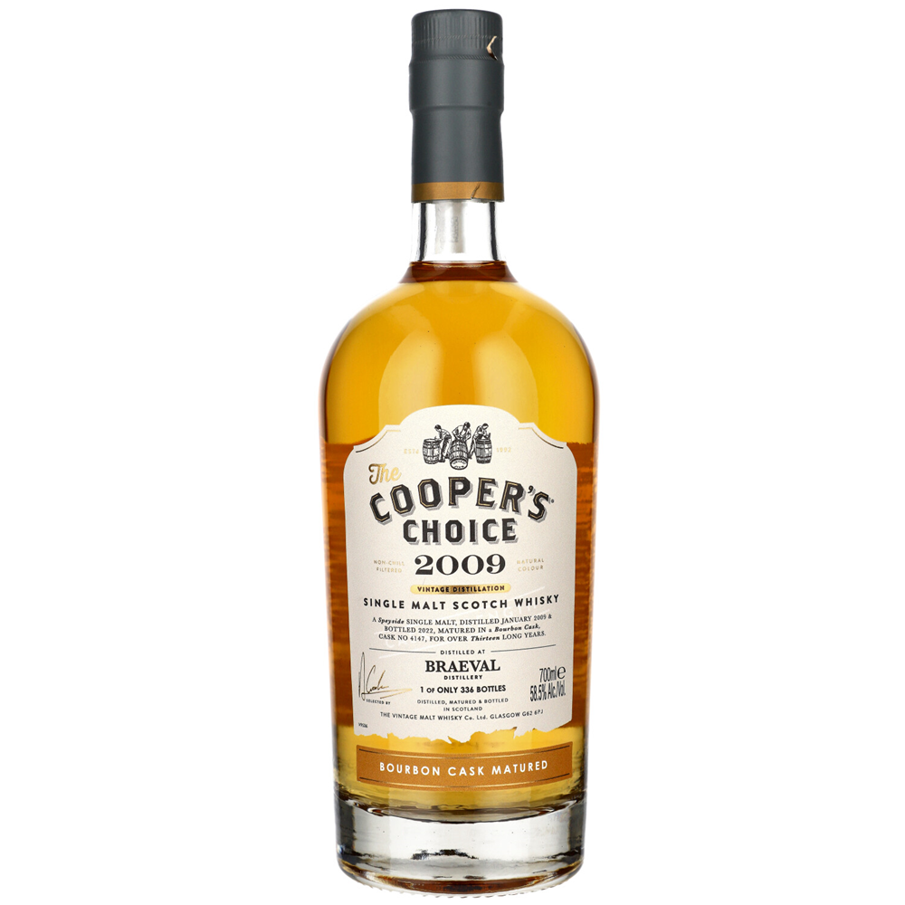 Niefiltrowana na zimno, o naturalnej barwie, rozlana w mocy beczki 57% ABV.