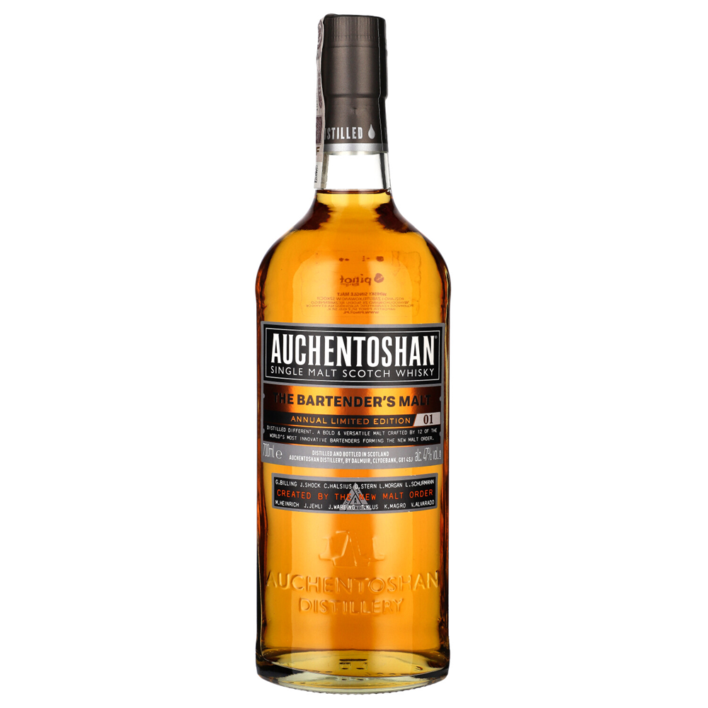 Auchentoshan Bartender's Malt Annual Limited Edition No. 1 to wyjątkowy single malt stworzony we współpracy z barmanami z całego świata, który doskonale oddaje bogactwo smaków i aromatów typowych dla destylarni Auchentoshan. Powstaje z mieszanki destylatów pochodzących z różnych beczek, w tym po bourbonie, rumie, czerwonym winie, niemieckim dębie oraz beczkach po whisky Laphroaig, co nadaje trunkowi wielowymiarowy charakter.