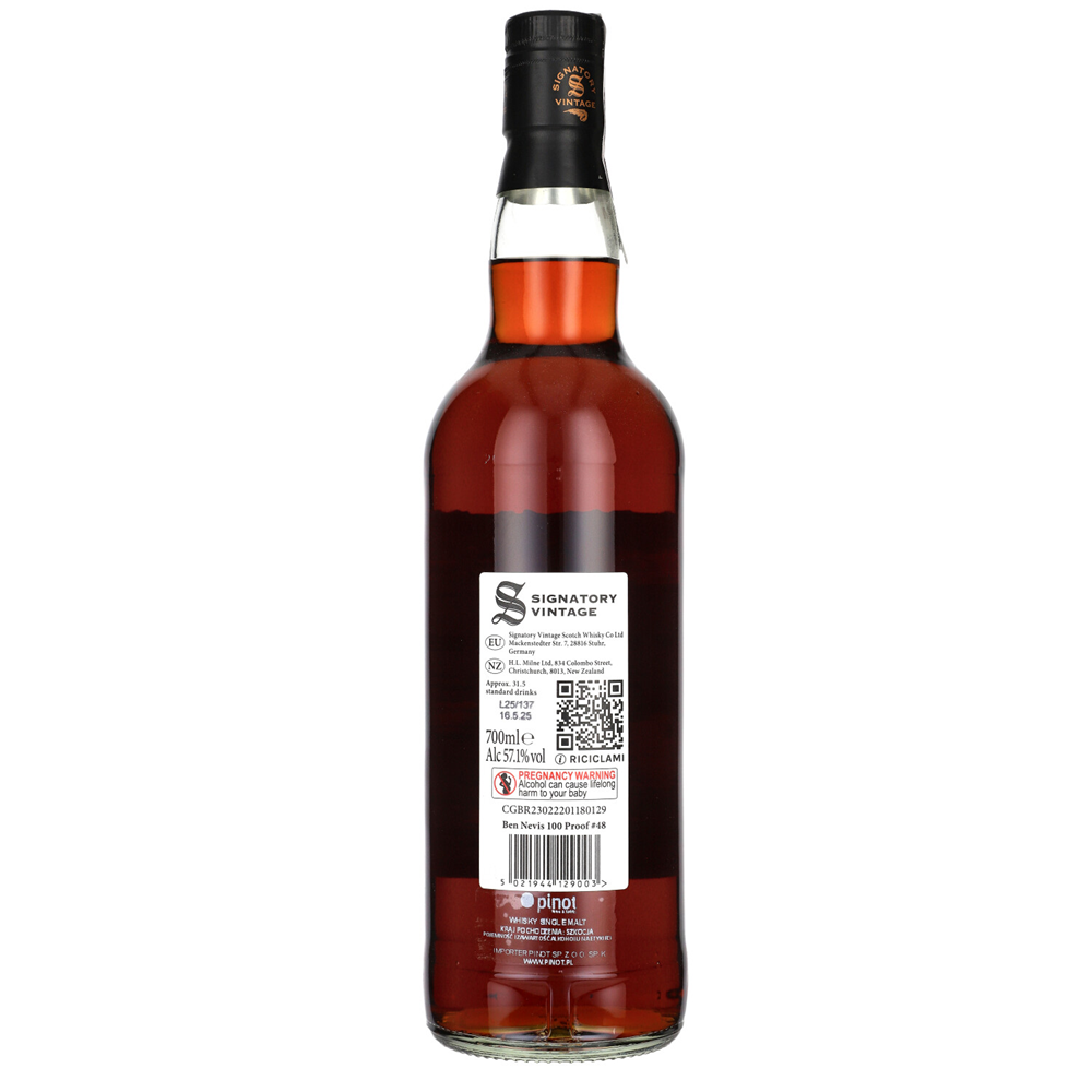 Aromat pełen sherry, dębu, suszonych daktyli i słodkiego syropu – z dodatkiem wody znika alkoholowa ostrość, a whisky pięknie się otwiera.