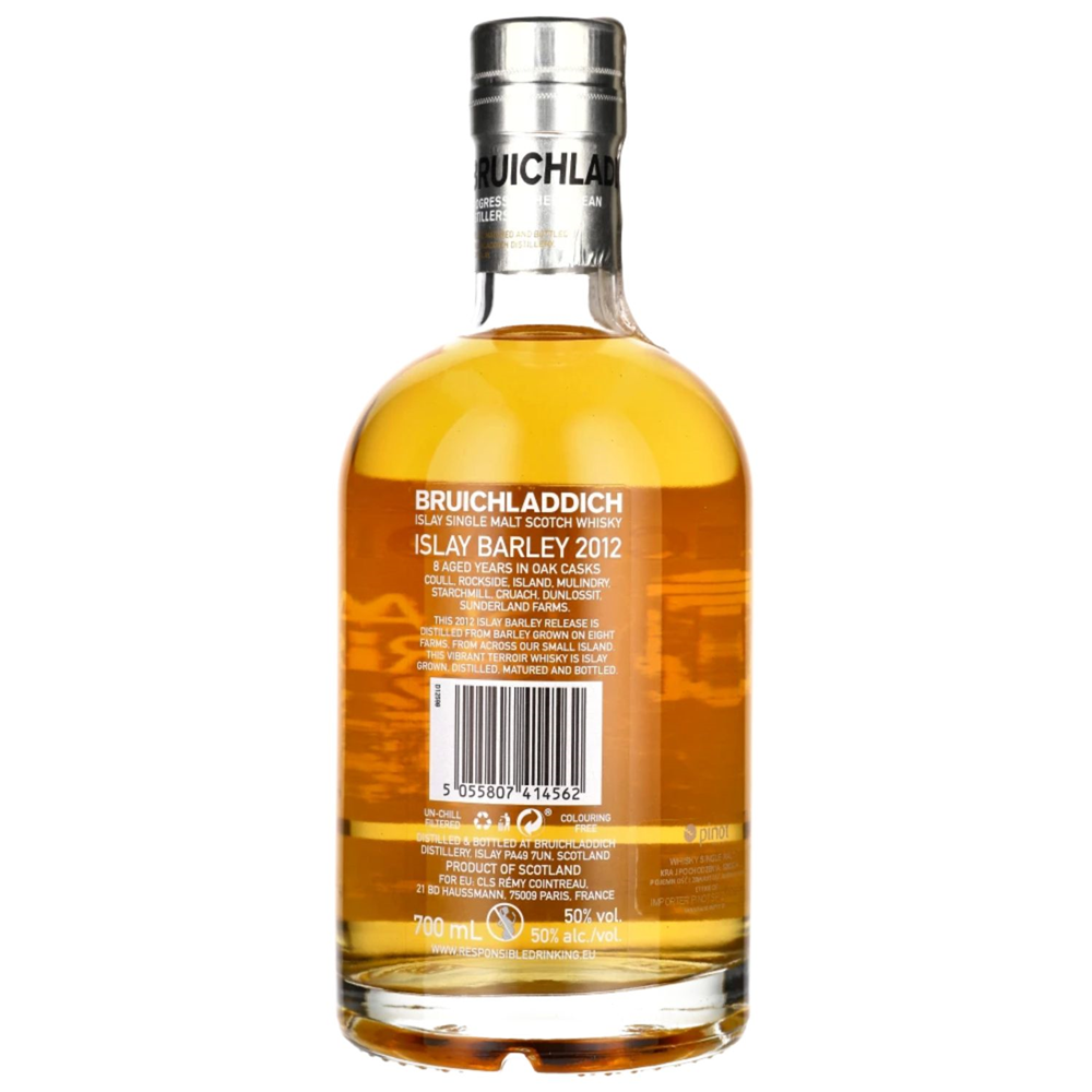 Bruichladdich Islay Barley 2012 – single malt whisky w 100% z jęczmienia uprawianego na Islay, zabutelkowana z mocą 50%. Łączy nuty cytrusów, suszonych moreli i brzoskwini z kremową wanilią, miodem i prażonym dębem. Finisz delikatnie słony, z akcentami drewna. Niefiltrowana na zimno, bez barwników, dostępna w zestawie z szklanką degustacyjną – esencja lokalnego rzemiosła z wyspy Islay.