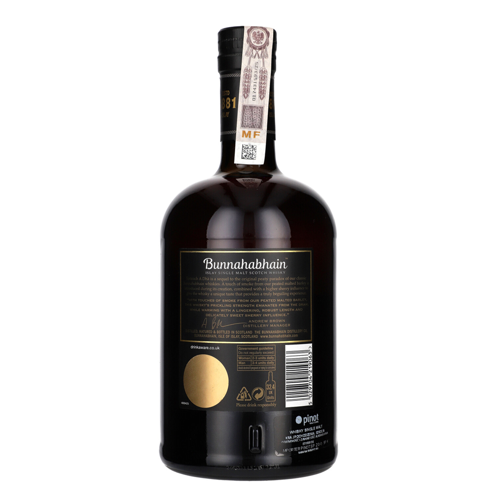 Bunnahabhain Toiteach to wyrazista szkocka whisky single malt z Islay, ukazująca bardziej torfowe i dymne oblicze destylarni. Powstaje ze słodu o wysokiej zawartości fenoli i dojrzewa głównie w beczkach po bourbonie, z większym udziałem beczek po sherry niż w pierwotnej wersji Toiteach.