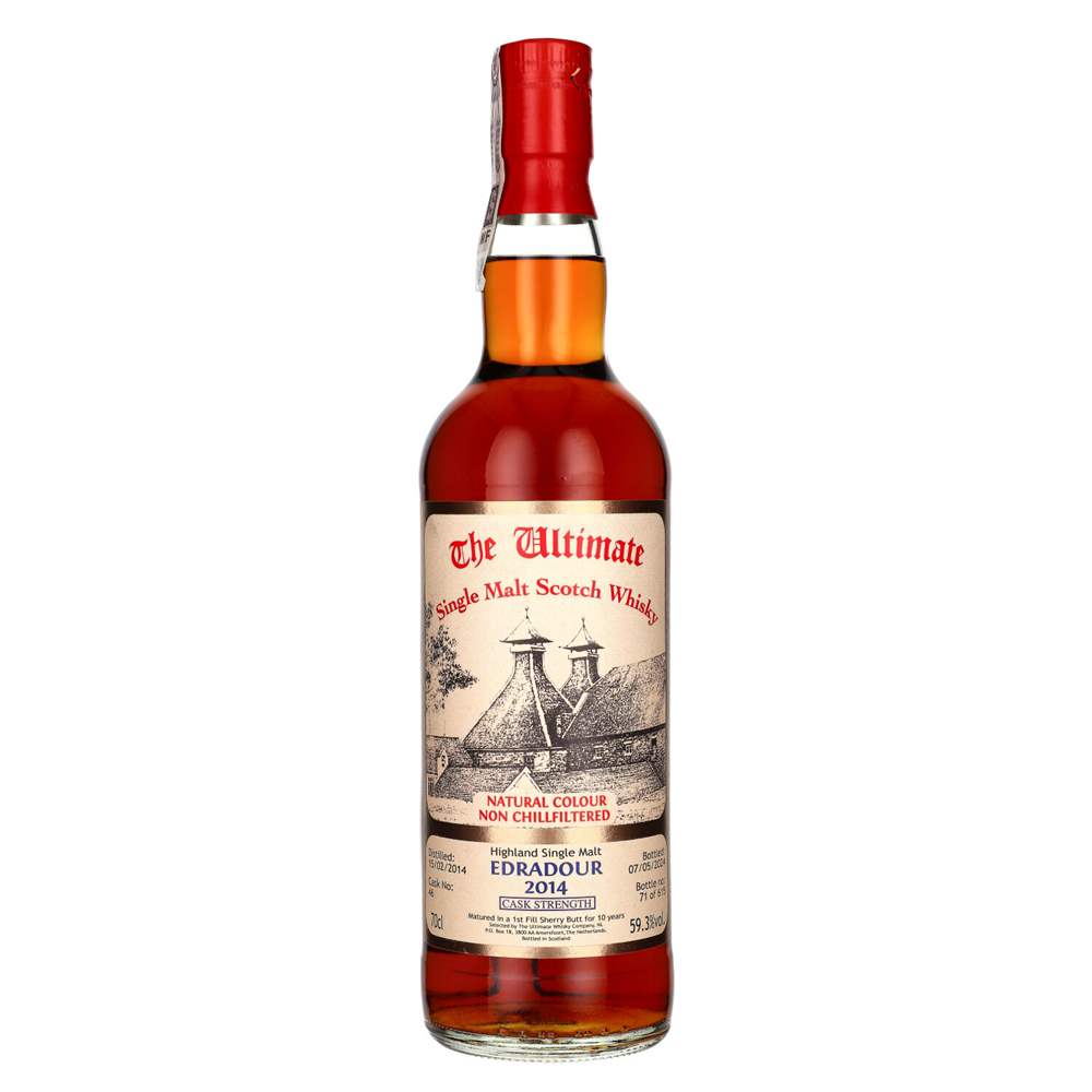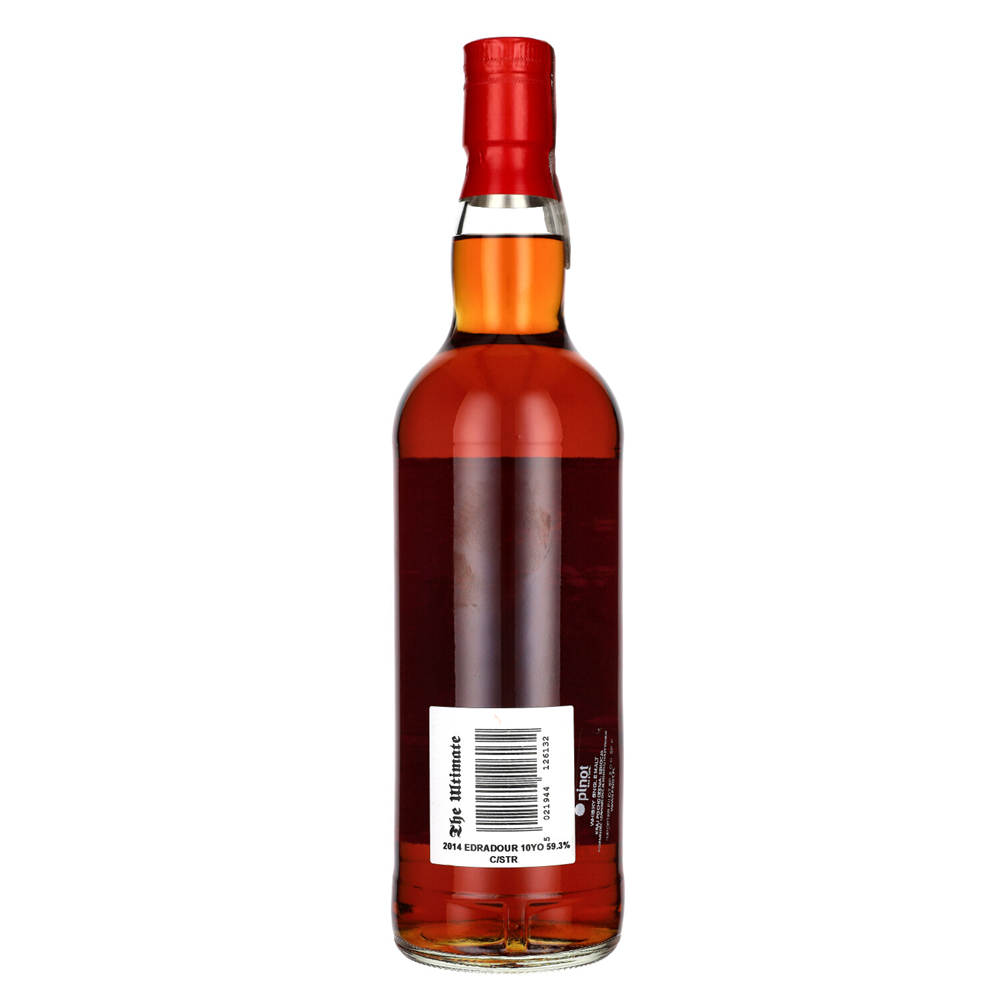 Edradour 10YO Cask Strength 2014 to intensywna, pełna charakteru whisky single malt o bogatym i złożonym profilu. W aromacie dominują nuty likieru pomarańczowego, daktyli, toffi, przełamane cynamonem, akcentem brandy, czekoladowym brownie oraz chlebem z suszonymi owocami i sułtankami. Na podniebieniu zachwyca kremową teksturą i doskonałym balansem – pojawiają się tony karmelu, kawy i czekolady, dulce de leche, goździków oraz przypraw z beczki, z subtelną nutą chili i orzechów włoskich oraz laskowych. Finisz średniej długości, wytrawny i lekko ziołowy, z akcentami grejpfruta, eukaliptusa i cedru.