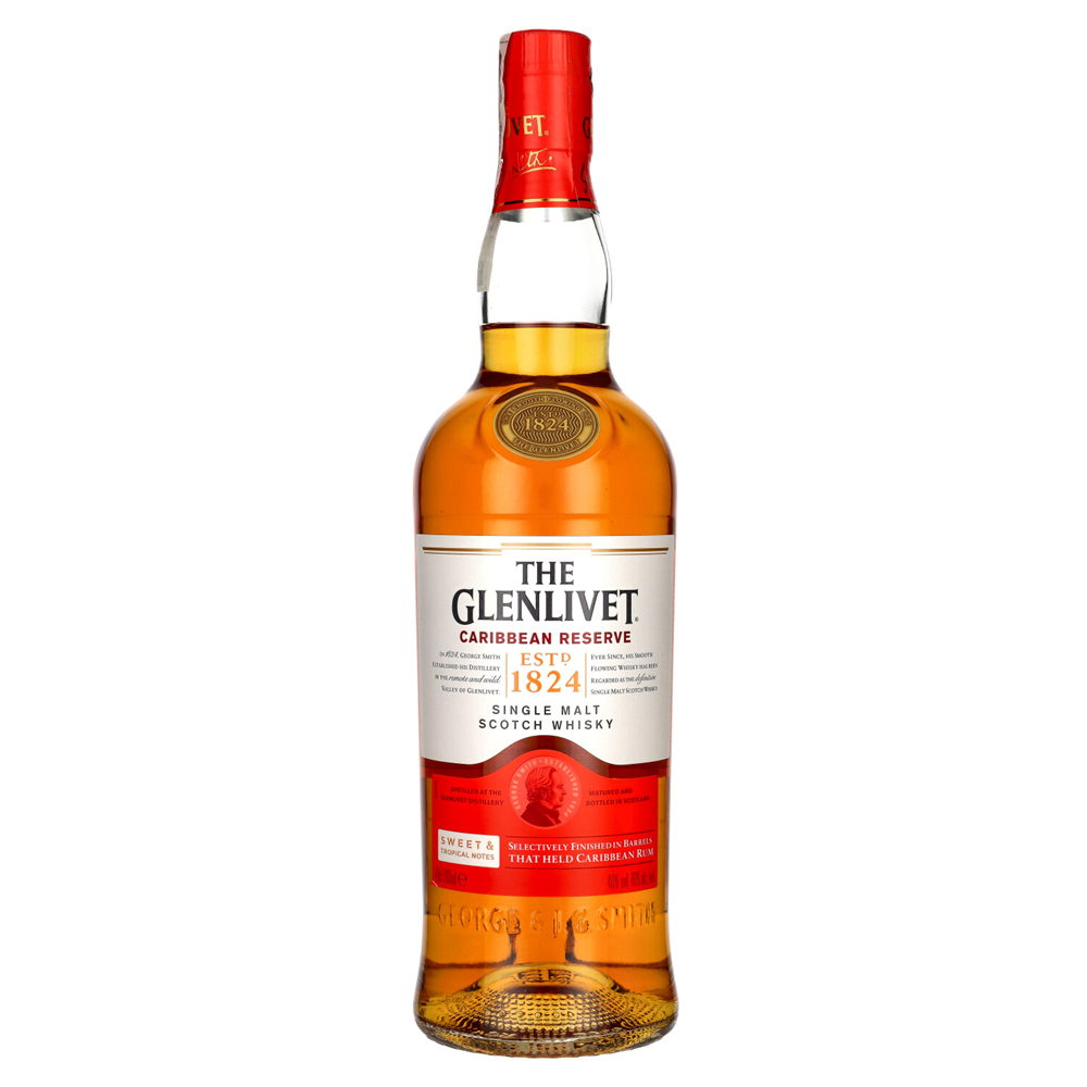 Glenlivet Caribbean Reserve to unikalna whisky typu single malt, pochodząca z regionu Speyside w Szkocji. Jej charakterystyczną cechą jest finisz w beczkach po rumie, co nadaje jej wyjątkowy, tropikalny smak.