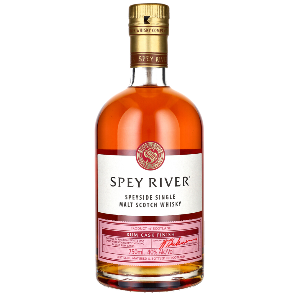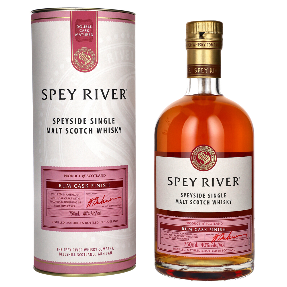 SPEY RIVER: RUM CASK Finiszowana w beczkach po rumie. Wyjątkowo bogaty i słodowy aromat z biszkoptową słodyczą i nutami świeżych owoców. Na podniebieniu słodka i zaokrąglona z biszkoptową słodyczą i owocami. Zakończenie łagodne i długotrwałe.