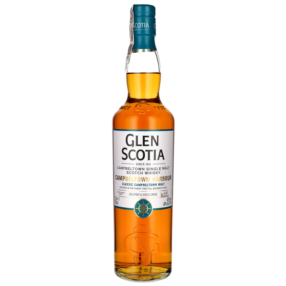 Glen Scotia Campbeltown Harbour to klasyczna whisky single malt, która doskonale oddaje charakter regionu Campbeltown. Butelkowana z mocą 40% alkoholu, prezentuje się w jasnym złotym kolorze, przyciągając wzrok i obiecując wyjątkowe doznania smakowe.