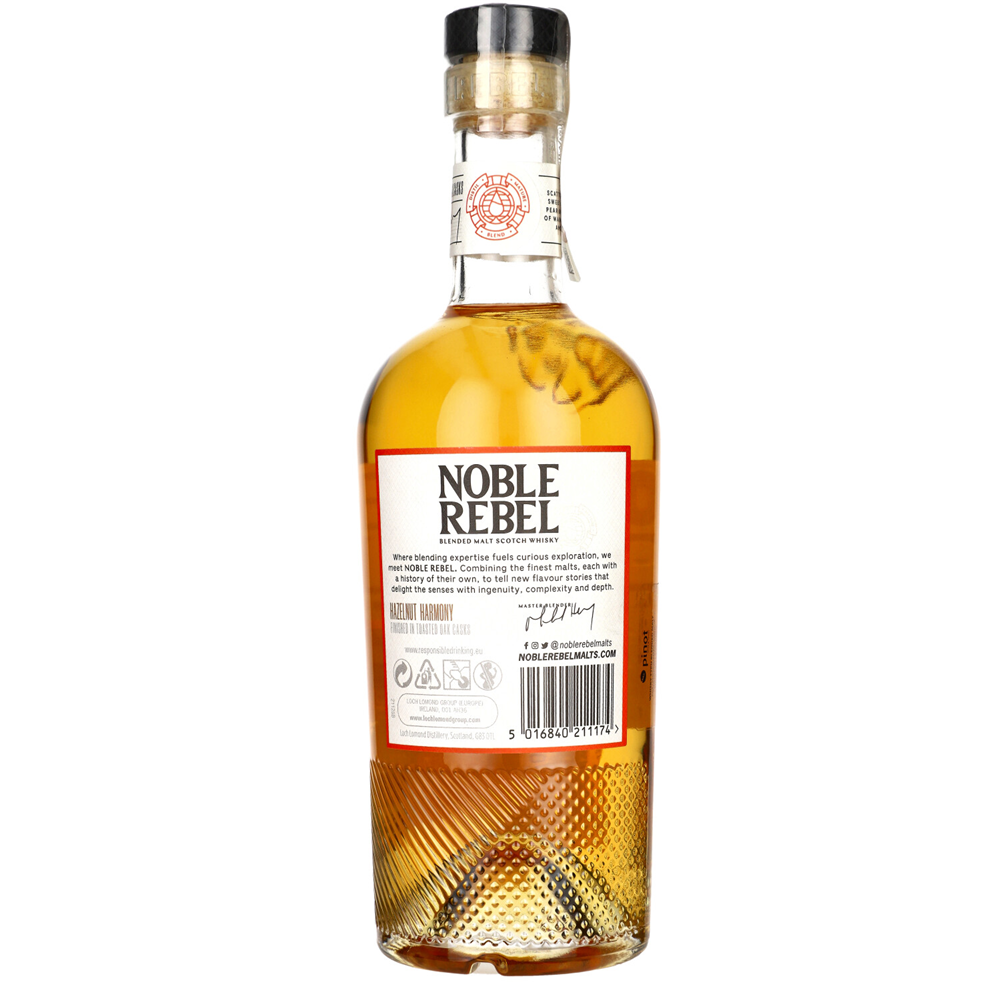 Noble Rebel Hazelnut Harmony Blended Malt to szkocka whisky z regionu Highland, produkowana w destylarni Loch Lomond.