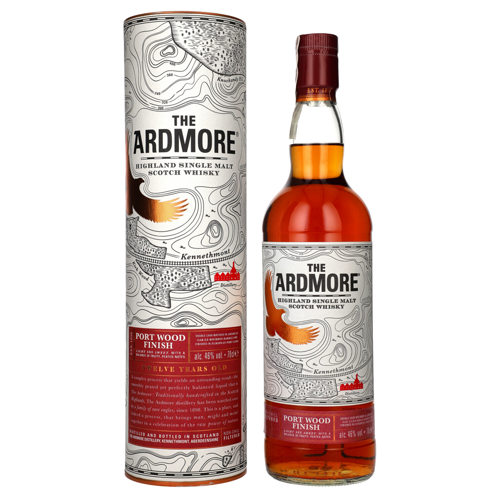 Wyjątkowa szkocka single malt whisky z destylarni Ardmore, dojrzewana przez 12 lat w beczkach po bourbonie, a następnie wykańczana w europejskich beczkach po portugalskim porto. Łączy klasyczny, lekko torfowy charakter Ardmore z owocową głębią i słodyczą czerwonego wina.