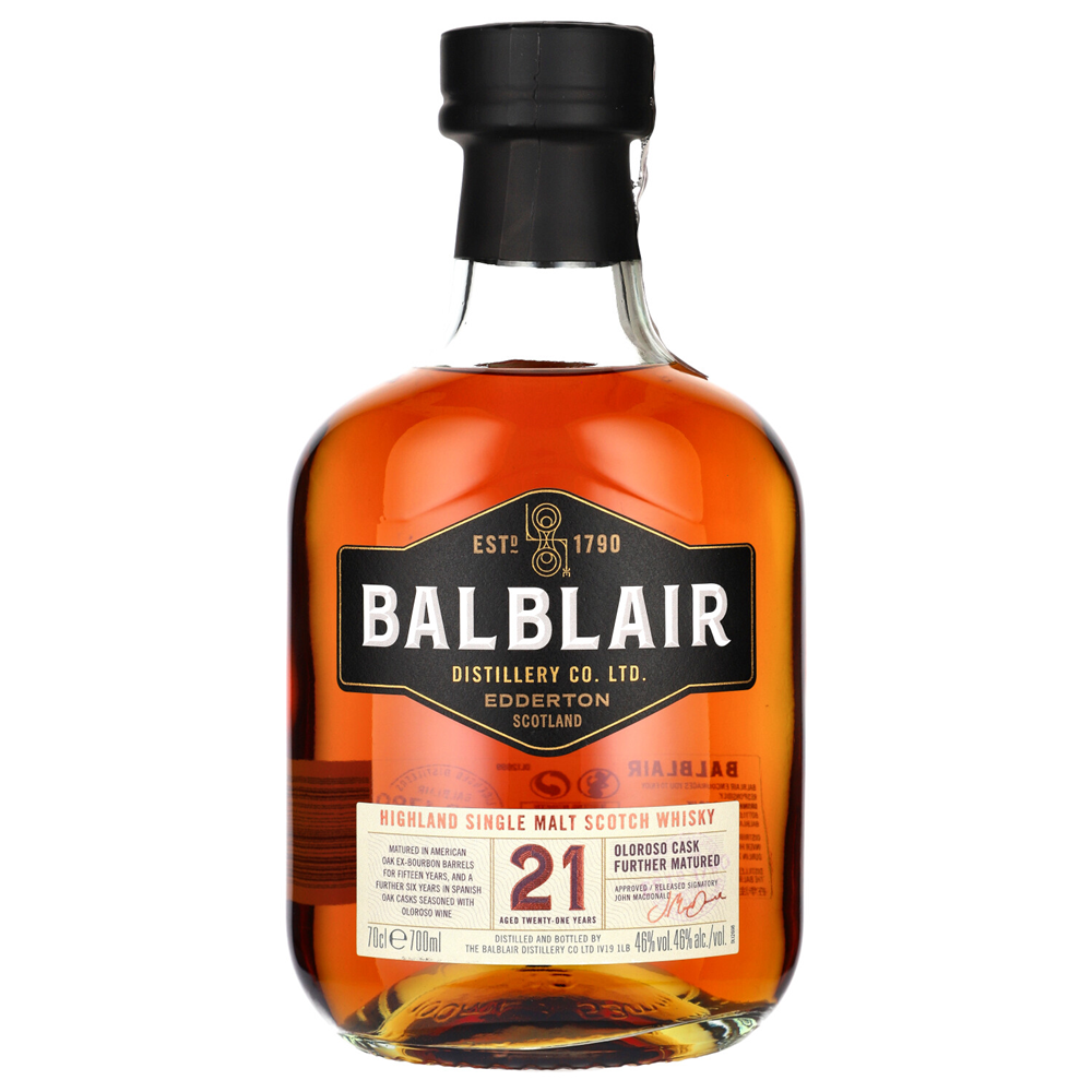 Wykończenie Balblair 21YO jest długie, gładkie, z przyjemnie utrzymującą się słodyczą i wyrazistymi nutami przypraw oraz szlachetnego dębu. Dojrzewanie w beczkach z amerykańskiego dębu oraz hiszpańskiego dębu po sherry Oloroso wzbogaca jej bukiet, nadając jej charakterystyczną głębię i wyrafinowanie.