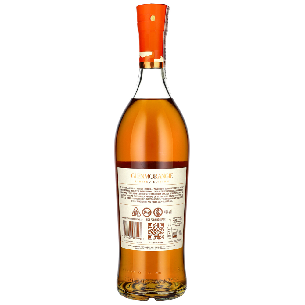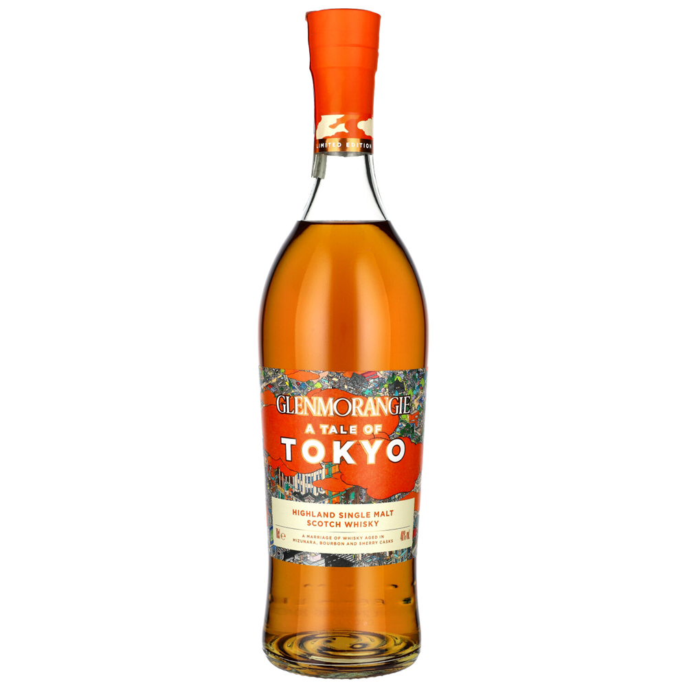Glenmorangie A Tale of Tokyo to limitowana edycja whisky single malt, która zachwyca wyjątkowym połączeniem smaków i aromatów. Produkowana przez destylarnię Glenmorangie, ta whisky łączy w sobie elementy tradycyjnej szkockiej produkcji z japońską finezją, dzięki starzeniu w beczkach po bourbonie, sherry oraz w rzadkim drewnie japońskim.