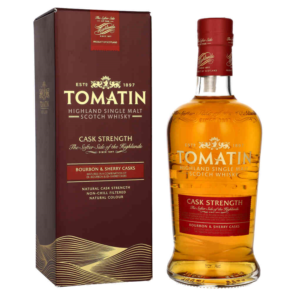 Tomatin Cask Strength Bourbon & Sherry to wyjątkowa whisky single malt o niezwykle bogatym i złożonym profilu smakowym, która łączy w sobie esencję dojrzewania w beczkach po bourbonie i sherry. Charakteryzuje się złotą barwą, która przyciąga wzrok, zapowiadając głębię smaków i aromatów.