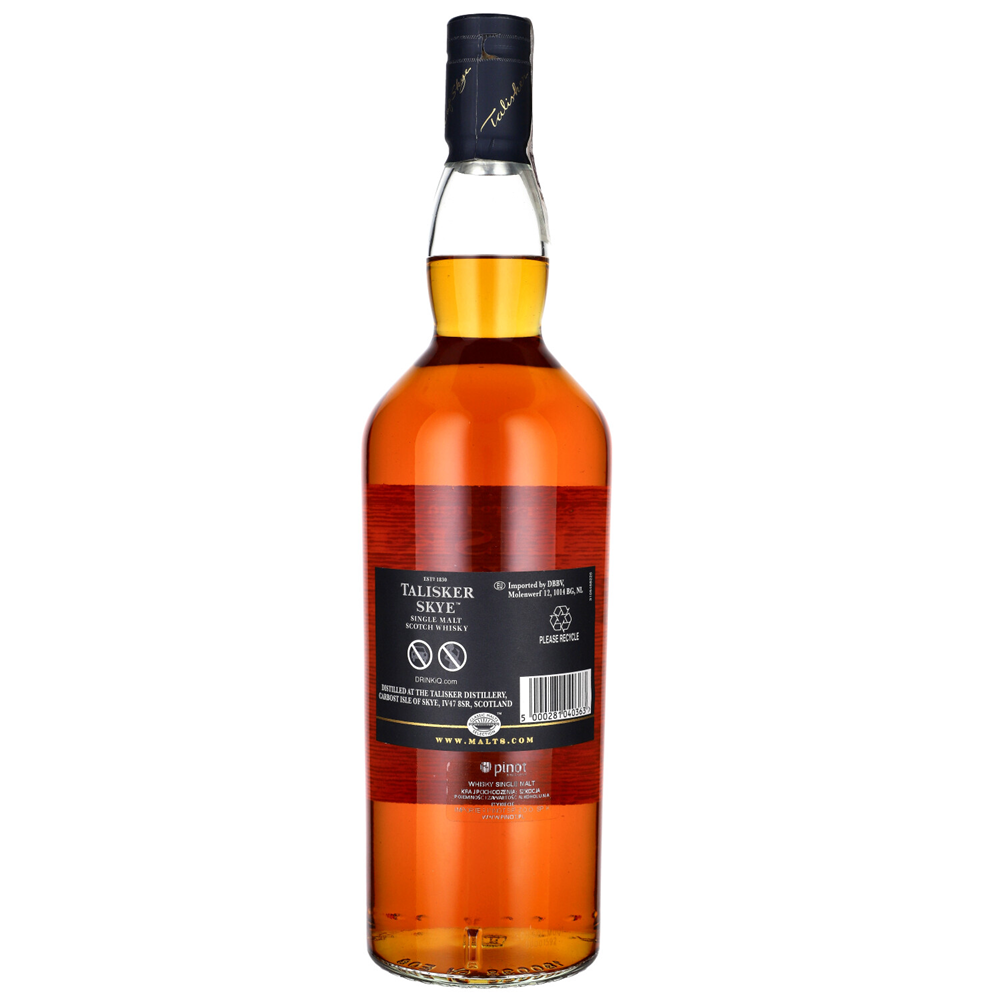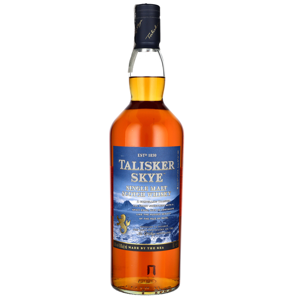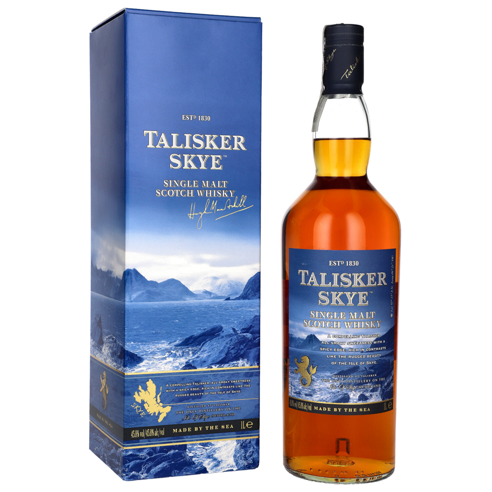 Whisky Talisker Skye to single malt ze szkockiej wyspy Skye, butelkowana z mocą 45,8% alkoholu. Charakteryzuje się zbalansowanym, słodkim profilem smakowym, w którym dominują świeże nuty cytrusowe, słodki dym oraz typowe dla Taliskera morskie akcenty. Whisky dojrzewa w mieszance beczek z amerykańskiego dębu, zarówno napełnianych ponownie, jak i tostowanych, co nadaje jej gładkości i złożoności.