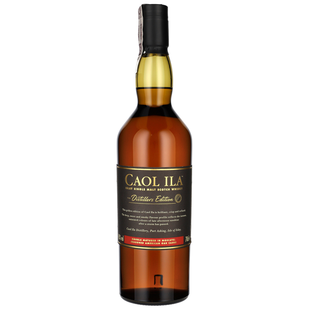 Caol Ila Distillers Edition Moscatel to wyjątkowa whisky, która doskonale łączy tradycję torfowych destylarni z nowoczesnym podejściem do wykańczania trunków. Ta specjalna edycja podkreśla klasyczny, torfowy styl Caol Ila, wzbogacony wtórnym dojrzewaniem w beczkach po winie Moscatel.