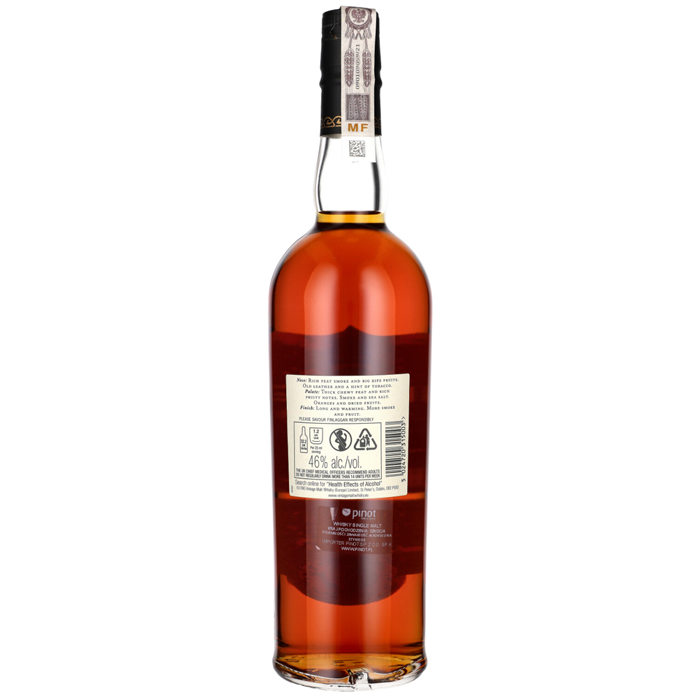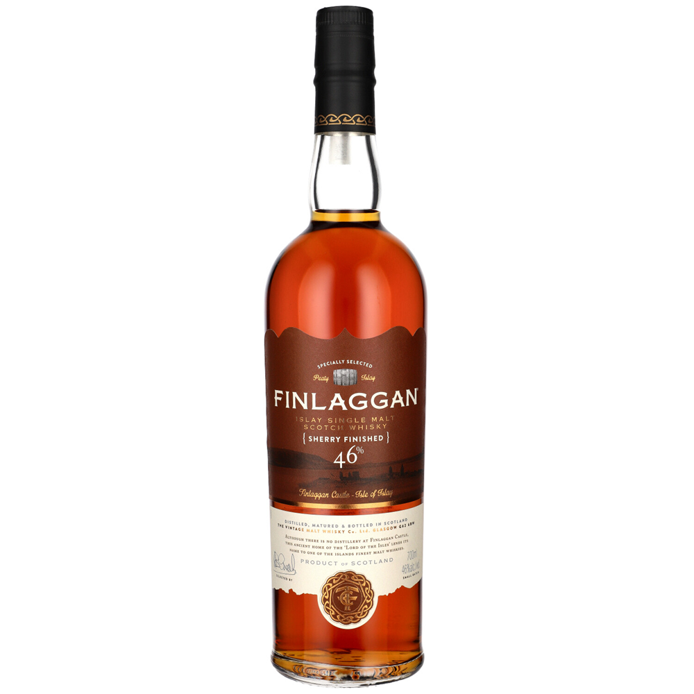 FINLAGGAN OLD RESERVE SHERRY CASK FINISH Edycja, która spędziła końcowy okres leżakowania w szlachetnych beczkach po hiszpańskim winie wzmacnianym sherry. Beczki pierwszego napełnienia po, Oloroso oraz Pedro Ximenez sherry. W aromacie orzechy, świeże owoce jagodowe przeplecione nutami medycznymi i dymem. W smaku rozgrzewający dym, pieprzność oraz rodzynki. Na finiszu suszone zioła i przyprawy długo wybrzmiewające.
