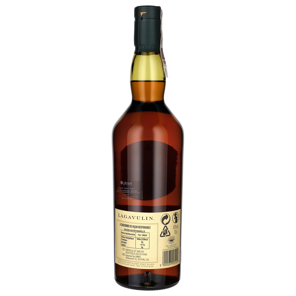 WHISKY SM LAGAVULIN 16Y to whisky dla miłośników intensywnych torfowych smaków, z wyraźnym wpływem dębowych beczek, które dodają jej słodkich i owocowych nut. Doskonała do degustacji w czystej postaci, oferująca porywający, długi finisz.