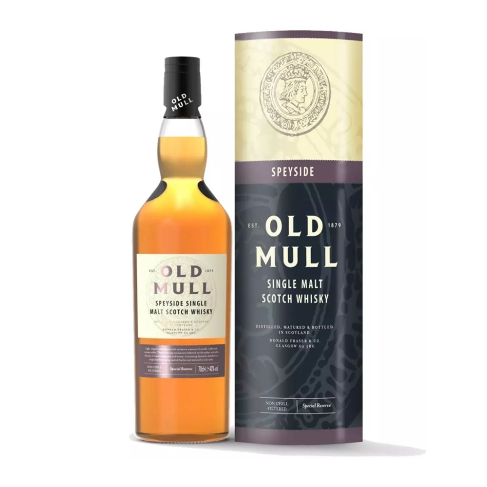 OLD MULL SPEYSIDE SINGLE MALT Lekka, elegancka i wyrafinowana z wyraźnymi tonami wanilii, toffi i kremowej kawy. Wspaniała whisky z regionu Speyside o kuszących aromatach prażonych migdałów i miodu. Destylat słodu jęczmiennego starzony jest w dębowych beczkach, gdzie nabiera głębi aromatu i smaku.