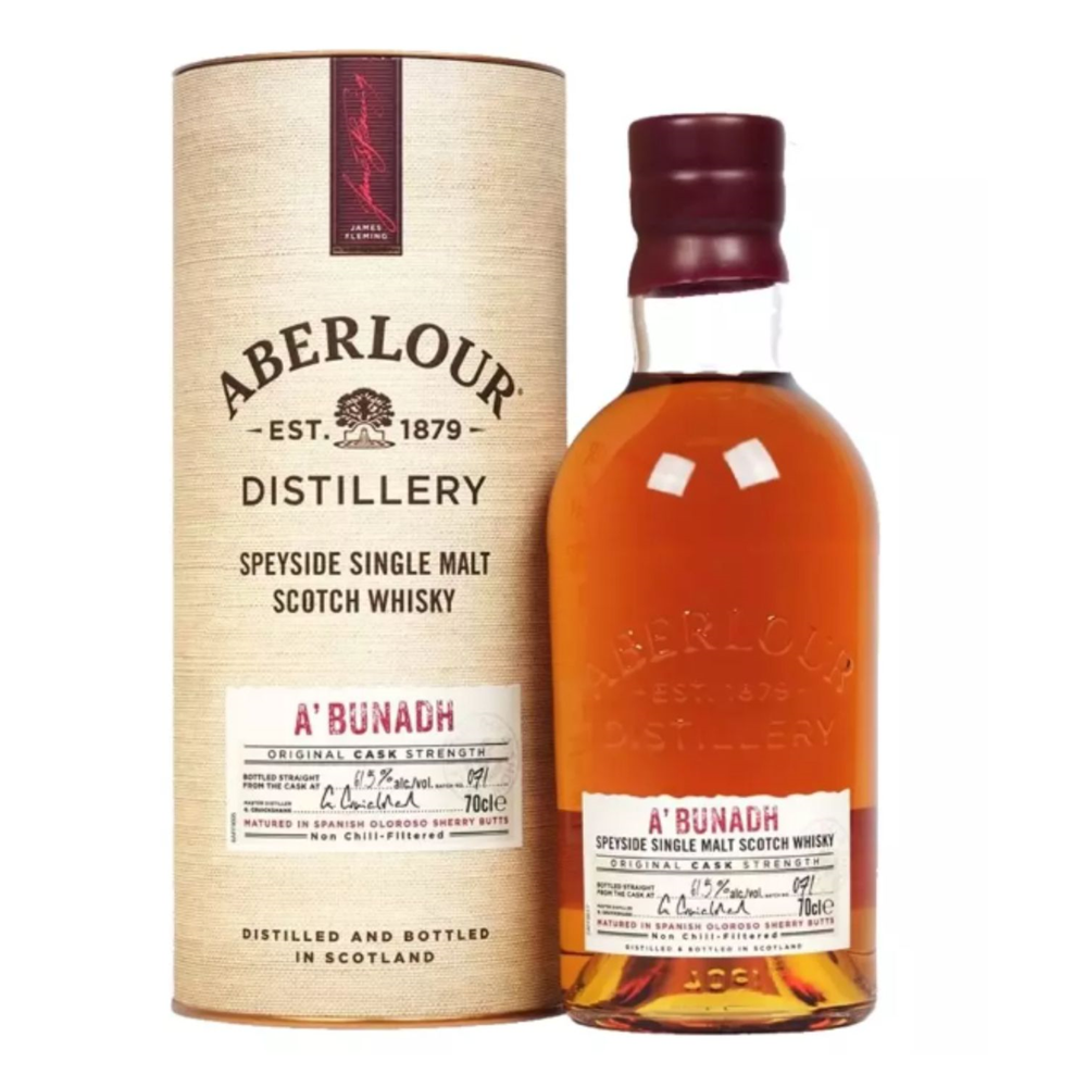 Każda partia tej wyjątkowej whisky jest przygotowywana ręcznie, dzięki czemu trunek ten stał się ikoną wśród koneserów. A’bunadh (w języku gaelickim szkockim „u źródła”) powstaje partiami i dojrzewa w beczkach po sherry oloroso. Został stworzony na cześć założyciela marki Aberlour, Jamesa Fleminga, za pomocą tradycyjnych metod oraz bez stosowania filtracji na zimno. Whisky ta wyróżnia się intensywnym i kremowym charakterem.