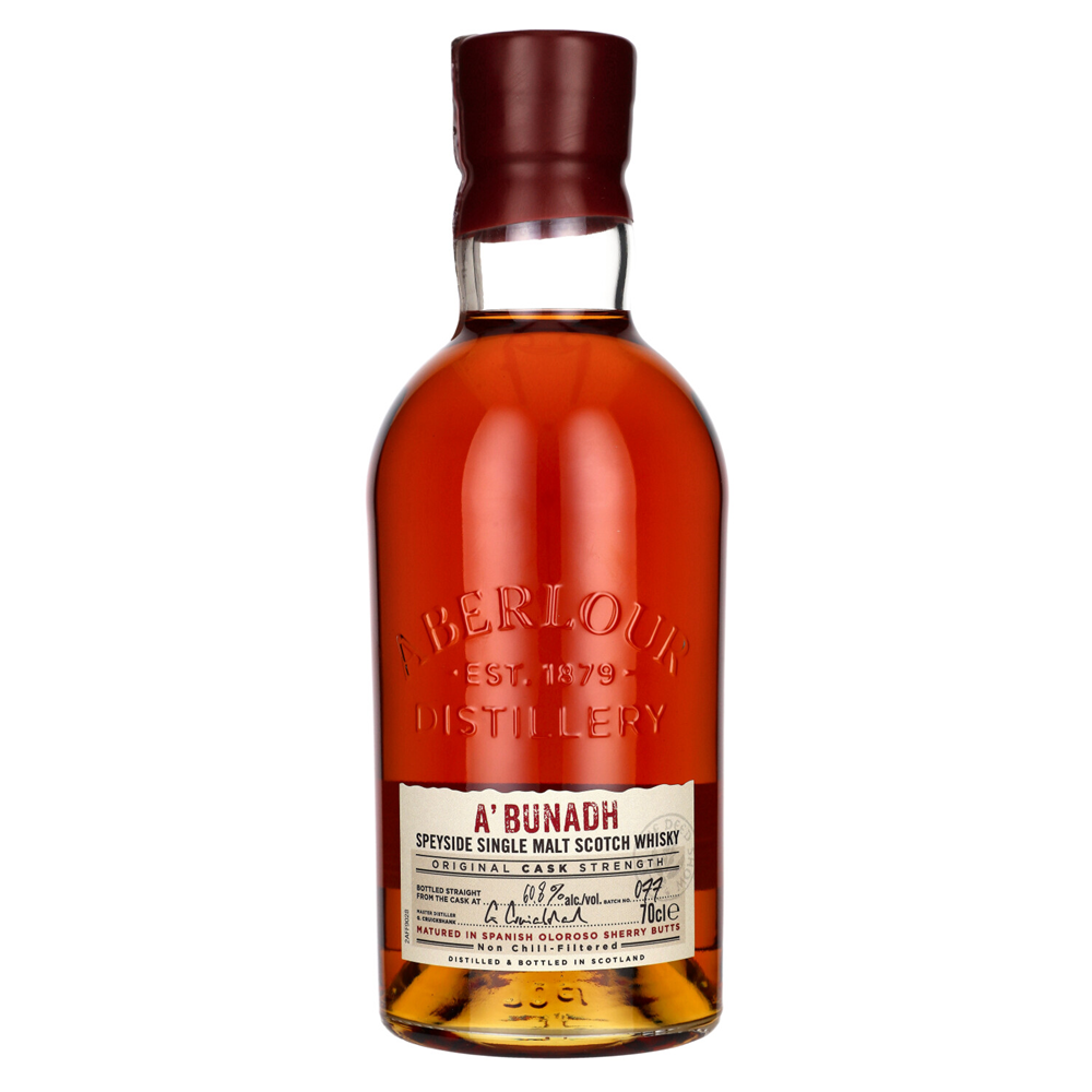 Każda partia tej wyjątkowej whisky jest przygotowywana ręcznie, dzięki czemu trunek ten stał się ikoną wśród koneserów. A’bunadh (w języku gaelickim szkockim „u źródła”) powstaje partiami i dojrzewa w beczkach po sherry oloroso. Został stworzony na cześć założyciela marki Aberlour, Jamesa Fleminga, za pomocą tradycyjnych metod oraz bez stosowania filtracji na zimno. Whisky ta wyróżnia się intensywnym i kremowym charakterem.