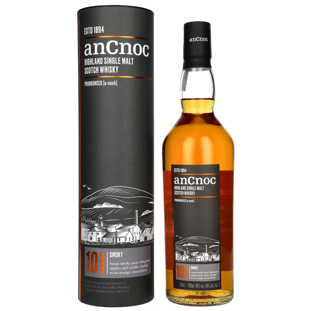 An Cnoc 10 Year Old Peated to elegancka szkocka whisky single malt z regionu Highlands, która oferuje idealną równowagę między słodyczą a dymnym charakterem. Dojrzewająca w beczkach po amerykańskim bourbonie, łączy nuty miodu, wanilii i jabłek z delikatnym, otulającym torfowym dymem. Profil smakowy jest gładki, z finiszem karmelu i prażonego dębu. Idealna propozycja dla miłośników whisky, którzy szukają subtelniejszych, a jednocześnie wyrazistych doznań dymnych.