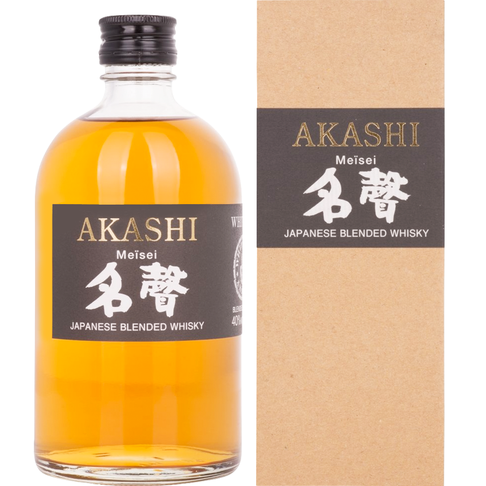 AKASHI WHITE OAK MEISEI Akashi Meisei stanowi połączenie whisky typu grain i single malt. Dojrzewa w amerykańskich dębowych beczkach. Po japońsku słowo „Meisei” oznacza być sławnym celebrytą. Barwa herbaciana, w zapachu głęboka i wyrazista dębina oraz wanilia. Smak początkowo pełny i słodki, lekko korzenny, finisz pełen nut drzewnych.