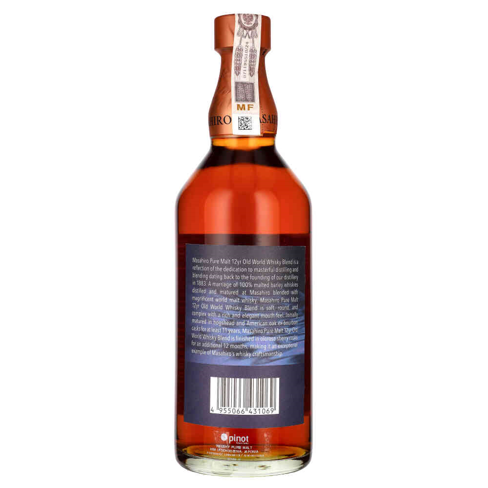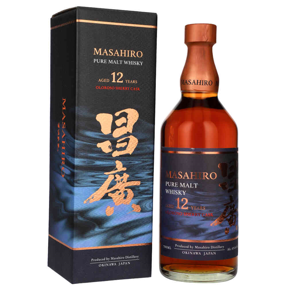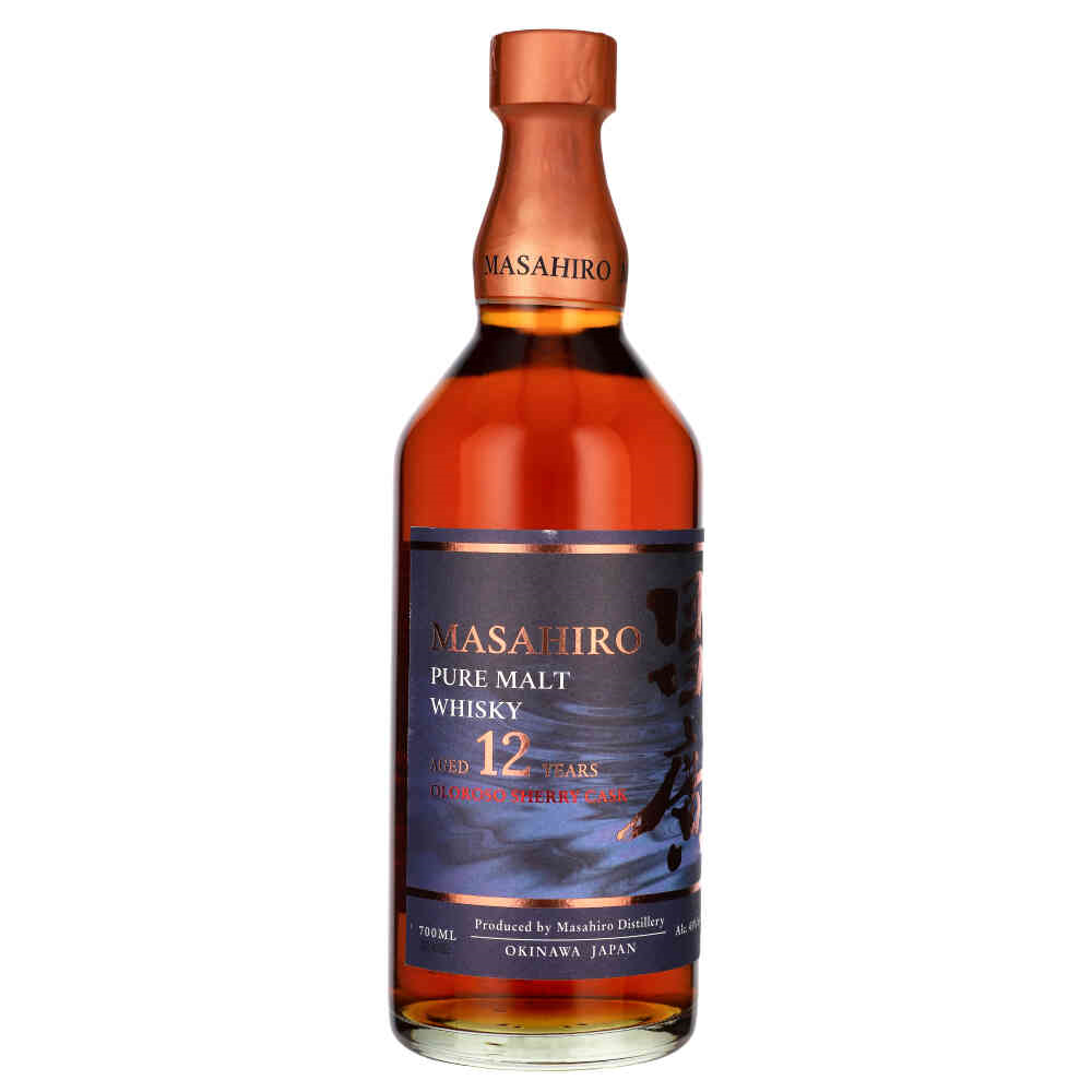 Whisky SM Masahiro 12Y Oloroso Sherry to wyjątkowa japońska whisky typu single malt, destylowana w 100% ze słodowanego jęczmienia pochodzącego z najlepszych regionów świata. Dojrzewa w destylarni Masahiro na Okinawie, gdzie subtropikalny klimat sprzyja szybszemu ekstraktowi aromatów z dębowych beczek, nadając trunkowi charakterystyczny, owocowy smak.