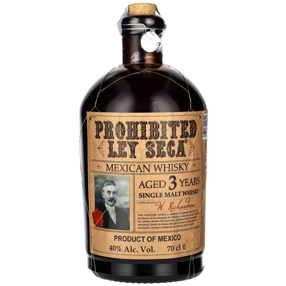 PROHIBITED LEY SECA Po drugiej stronie Rio Grande, tam gdzie głównie produkuje się mezcal i tequile, narodziła się Ley Seca, whisky produkowana w 100% ze słodu jęczmiennego z Bajio w Meksyku. Dzięki swojej unikalnej recepturze stała się najbardziej pożądaną whisky za czasów prohibicji – Destylat dojrzewa 3 lata w lekko zwęglonych beczkach z amerykańskiego dębu. W smaku wyczuwalny słód jęczmienny, wanilia, dąb, nuty owocowe i dym. W tle delikatna czekolada i orzechy. Finisz dymno-miodowy z długim gładkim wykończeniem.