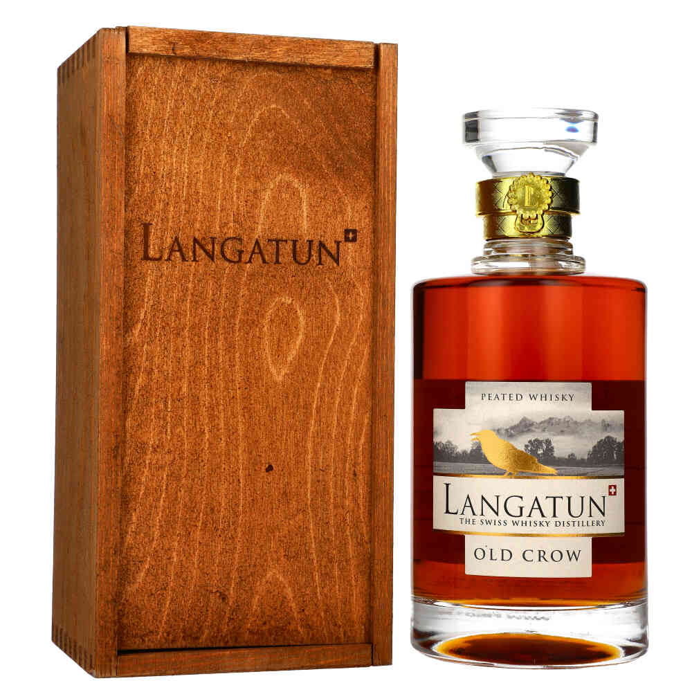 WHISKY SM LANGATUN OLD CROW PEATED to wyjątkowy single malt, który zachwyca intensywnym torfowym charakterem. Produkowana w Szwajcarii, jest jedną z pierwszych whisky w Europie, suszoną torfem, co nadaje jej niepowtarzalny, dymny aromat.