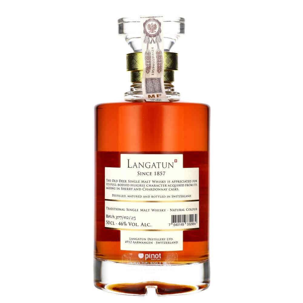 WHISKY SM LANGATUN OLD to klasyczny single malt z serca Szwajcarii, destylowany wyłącznie ze słodu jęczmiennego bez dodatku torfu. Dojrzewający w beczkach po winie Sherry i Chardonnay, zyskuje wyjątkową złożoność i elegancki, aksamitny finisz. To whisky o czystym, naturalnym charakterze, która idealnie oddaje filozofię rzemieślniczego podejścia Langatun do produkcji trunków.