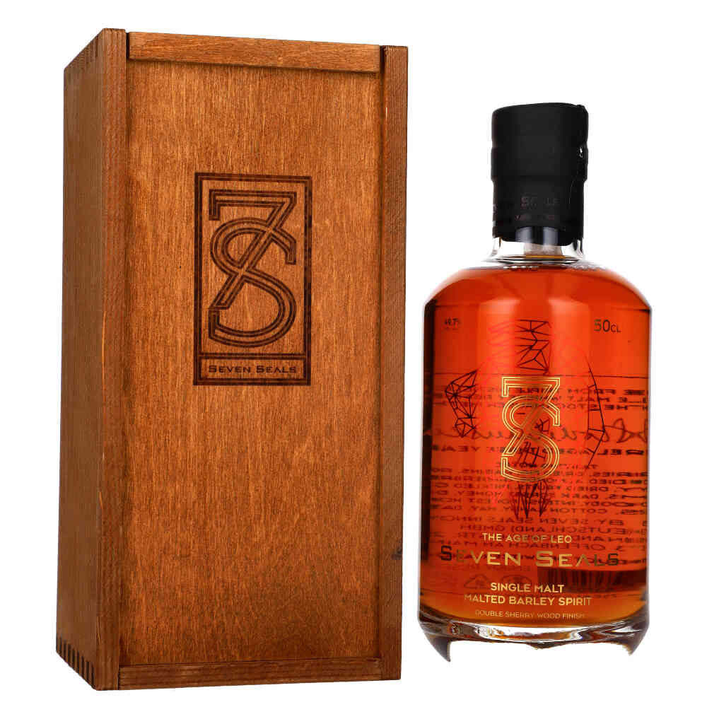WHISKY SM SEVEN SEALS PEATED PORT to torfowy single malt, który łączy moc z delikatną słodyczą. Pod znakiem Lwa, whisky ta jest pełna pewności siebie, z intensywnymi owocowymi i drzewnymi nutami. Trzykrotne dojrzewanie w drewnianych beczkach i podwójne wykończenie w beczkach po Pedro Ximenez sprawiają, że jest to prawdziwa eksplozja sherry.