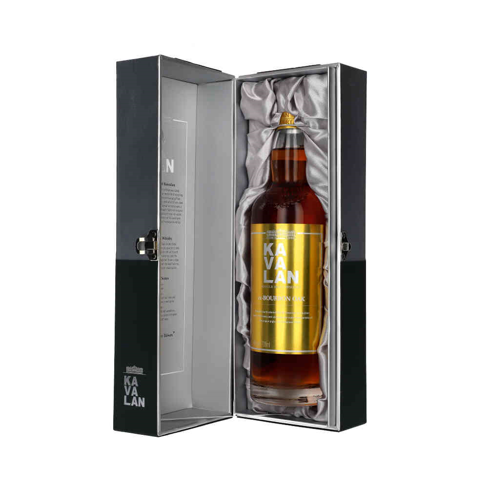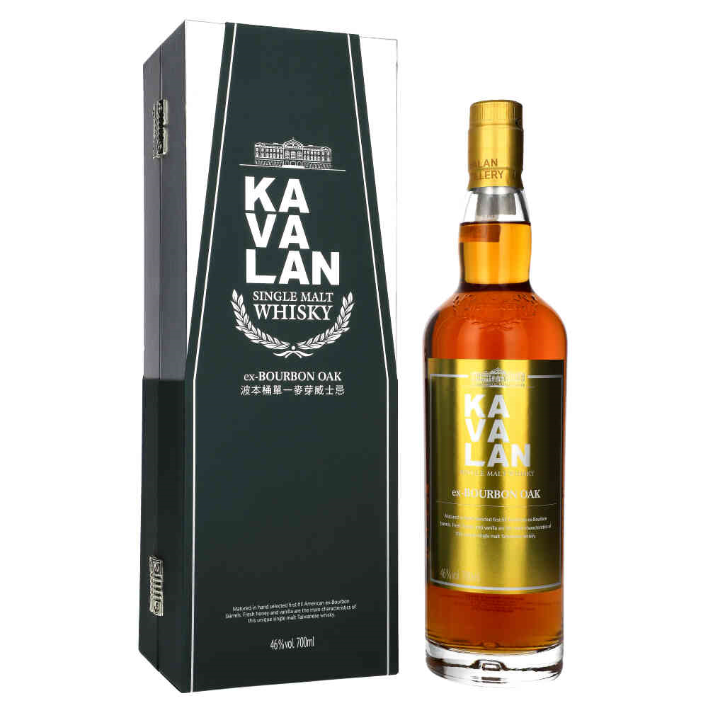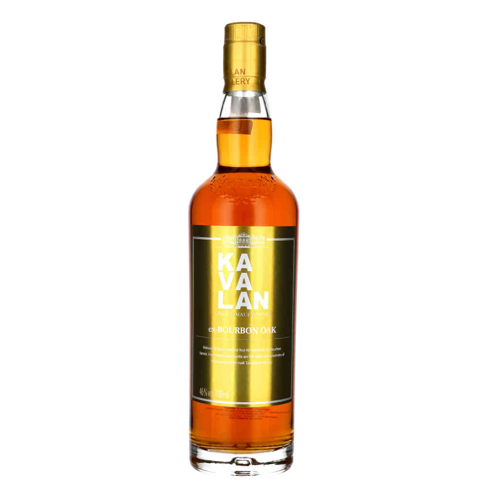 Kavalan Ex-Bourbon Oak to wyjątkowa whisky z Tajwanu, która pochodzi z tych samych beczek, co kolekcja Solist, lecz różni się tym, że przed butelkowaniem jest rozcieńczana lokalną wodą źródlaną, co obniża zawartość alkoholu do 46%. Whisky dojrzewa przez co najmniej 4 lata w beczkach po amerykańskim Bourbonie, które nigdy wcześniej nie były używane, co nadaje jej bogate, tropikalne nuty.