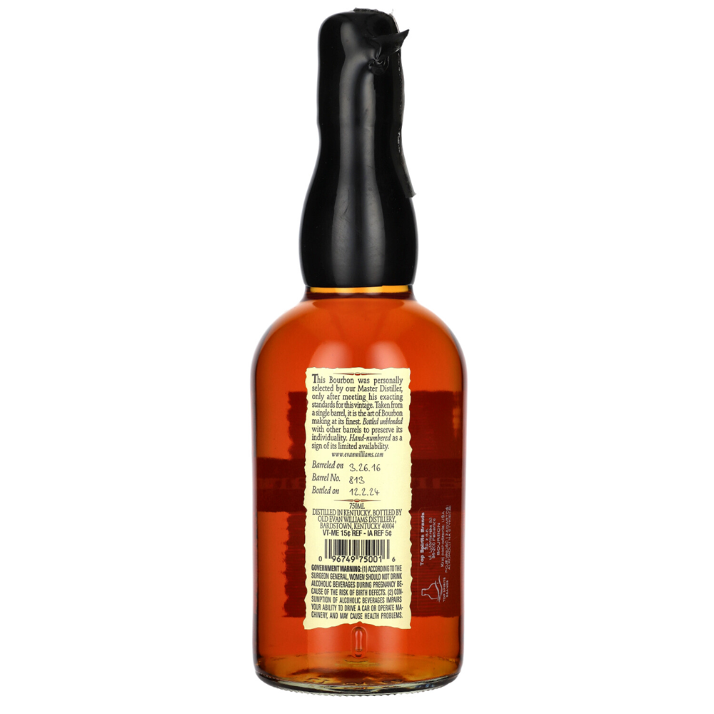 Evan Williams Single Barrel 43,3% to amerykański bourbon produkowany przez destylarnię Heaven Hill w Kentucky, należący do jednych z najpopularniejszych bourbonów na świecie. Powstaje z mieszanki zbóż (75% kukurydzy, 13% żyta, 12% jęczmienia) i dojrzewa minimum 2 lata w nowych, dębowych beczkach.