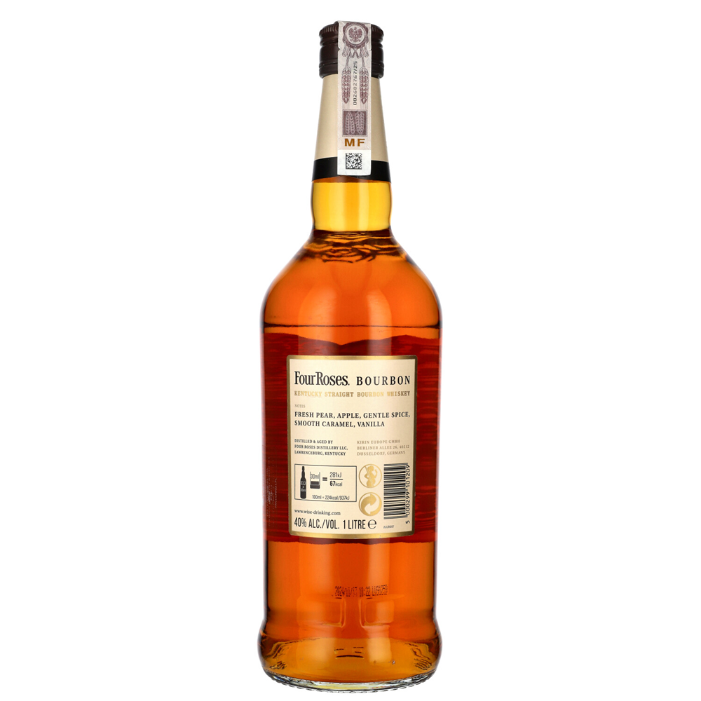 WHISKY BN FOUR ROSES to bourbon o wyjątkowym profilu smakowym, starzony od 5 do 6 lat, który zachwyca swoją przystępnością. idealny wybór dla tych, którzy szukają wyjątkowego bourbonu o eleganckim i wyrafinowanym smaku, który doskonale sprawdza się zarówno w czystej postaci, jak i w koktajlach