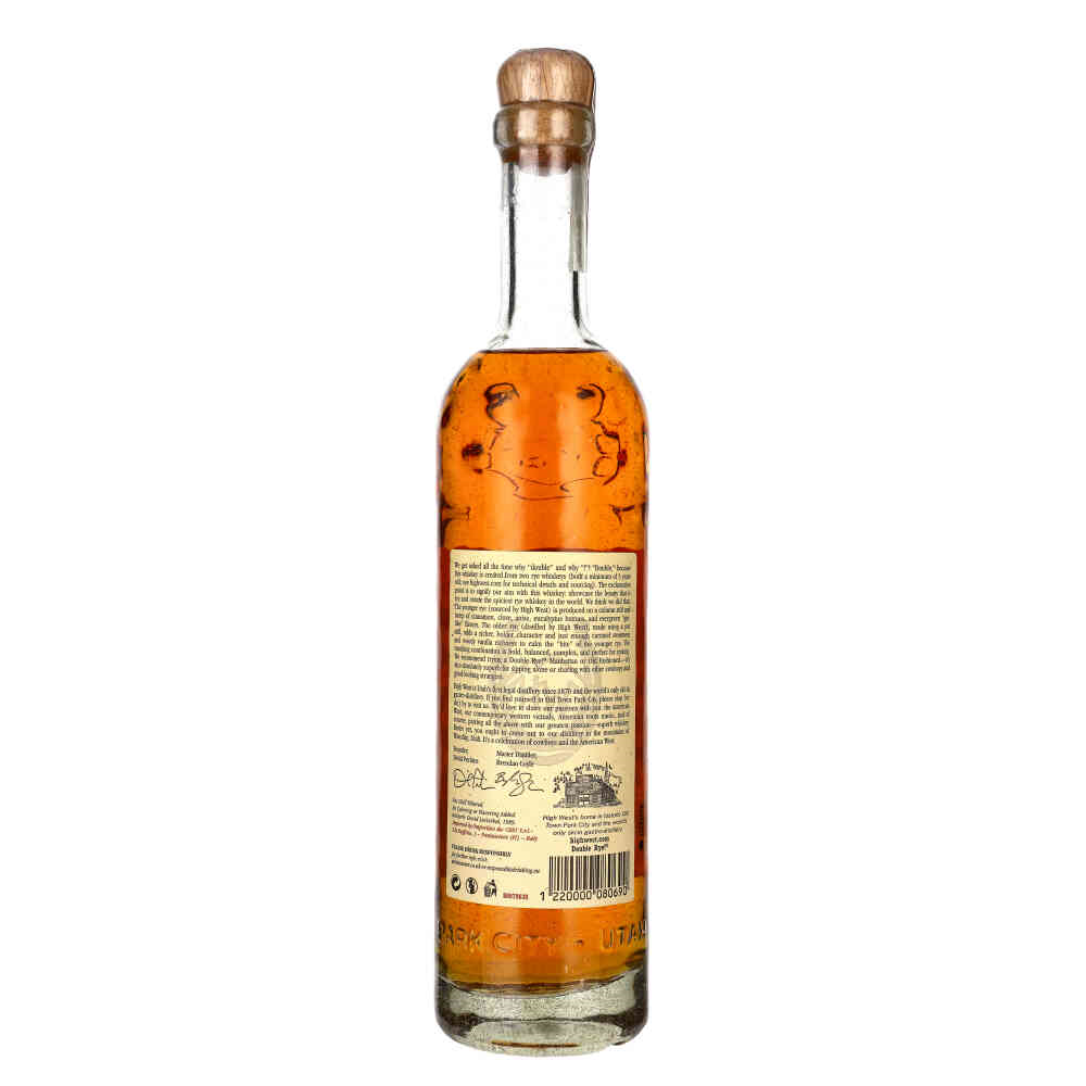 HIGH WEST DOUBLE RYE BATCH Podstawowa pozycja w ofercie High West Distillery. Doskonała mieszanka 2-letniej żytniej whiskey z MPG Indiana i 8-letniej żytniej whiskey własnej produkcji. W nosie wyczuwalne lekkie siano z odrobiną dębu. Na podniebieniu pojawia się stonowana wanilia, miód i cynamon. Na finiszu słodkie akcenty przyjemnie rozgrzewają i łączą się z nutami dębiny.