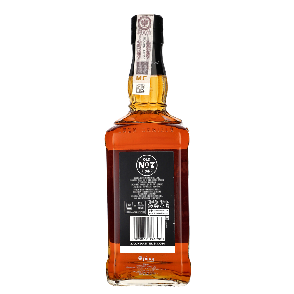 Jack Daniel’s Old No. 7 to najsłynniejsza whiskey z portfolio marki i prawdziwa ikona z Lynchburga. Produkowana od 1875 roku, wyróżnia się tradycyjną recepturą zacieru (78% kukurydzy, 12% żyta, 10% słodowanego jęczmienia) oraz unikalnym procesem charcoal mellowing, czyli filtracją przez klonowy węgiel drzewny. Następnie dojrzewa około 4 lat w nowych, wypalanych beczkach z białego dębu.