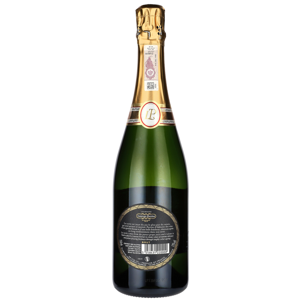 CHAMPAGNE LAURENT PERRIER BRUT to elegancki trunek o jasnozłotej barwie z drobnymi, trwałymi bąbelkami. Jego aromat jest subtelny, z delikatnymi nutami świeżych cytrusów i białych kwiatów, które podkreślają jego świeżość. Na podniebieniu ukazuje złożoność, z nutami brzoskwini winnej i białych owoców, zachowując idealną równowagę między świeżością a delikatnością. Wyraźne owocowe akcenty dominują na finiszu, który jest długi i wyrafinowany.