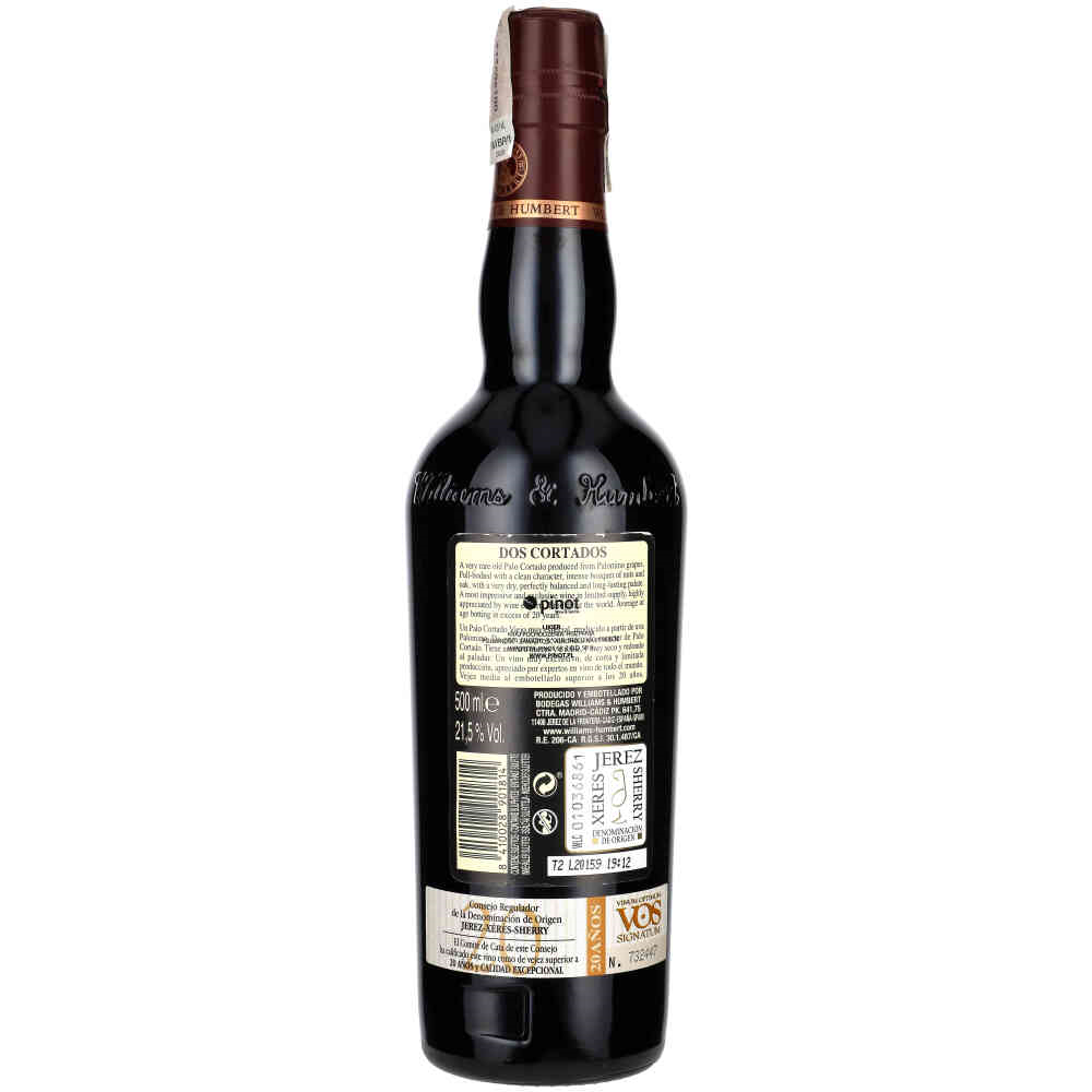 Sherry Soler Dos Cortados Palo Cortado 20Y to wyjątkowe wzmacniane wino o mocy 21,5% alkoholu, które przyciąga swoją intensywnością i głębią. Jego aromat jest ostry i złożony, natomiast na podniebieniu ujawniają się subtelne nuty leszczyny i suszonych owoców.