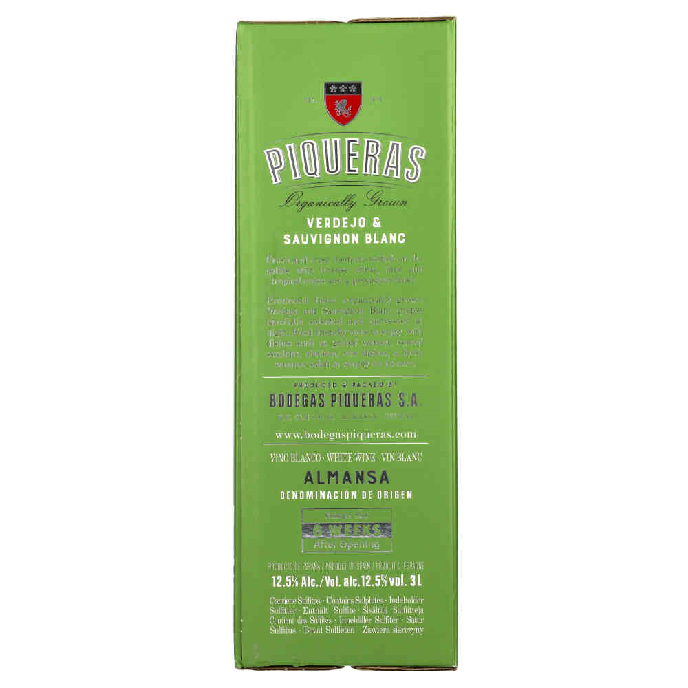 PIQUERAS WHITE BIB to białe wino produkowane przez winnicę Bodegas Piqueras z regionu Almansa w Hiszpanii. Jest to mieszanka 60% Verdejo i 40% Sauvignon Blanc.Winogrona uprawiane są metodami ekologicznymi na glebach wapiennych, co podkreśla wyjątkowy charakter trunku.